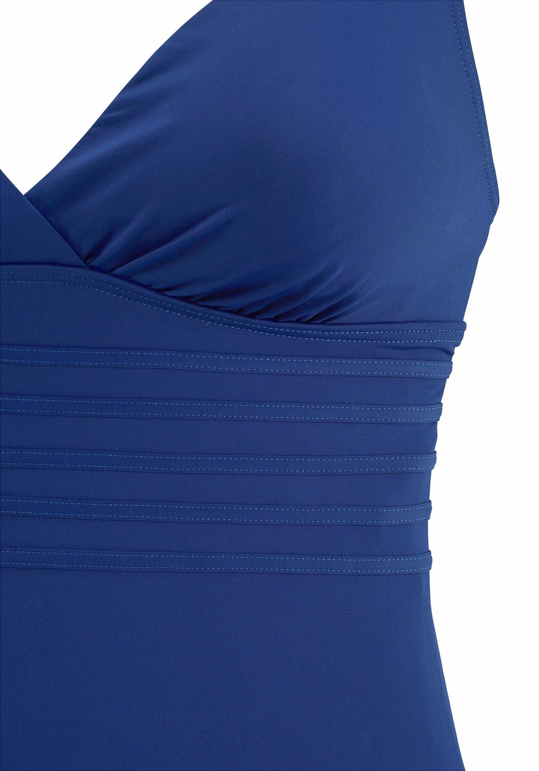 Модный купальник от Lascana с искусно перекрещенными бретелями на спине. Встроенные мягкие чашки и моделирующая вставка для еще более красивой пляжной фигуры. Качественная мягкая микрофибра.