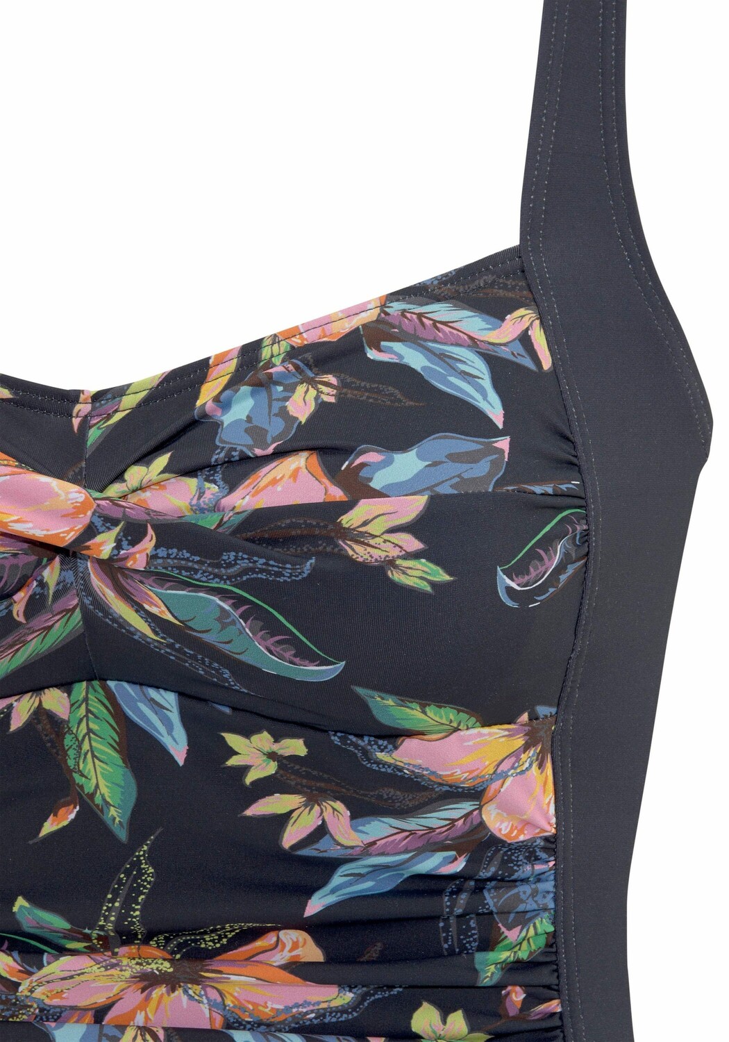 Цветочный купальник от Lascana. Формирующая вставка и поддерживающая резинка под грудью спереди. Встроенные мягкие чашки подчеркивают зону декольте. Микс-кини для смешивания по настроению. Качественная мягкая микрофибра.