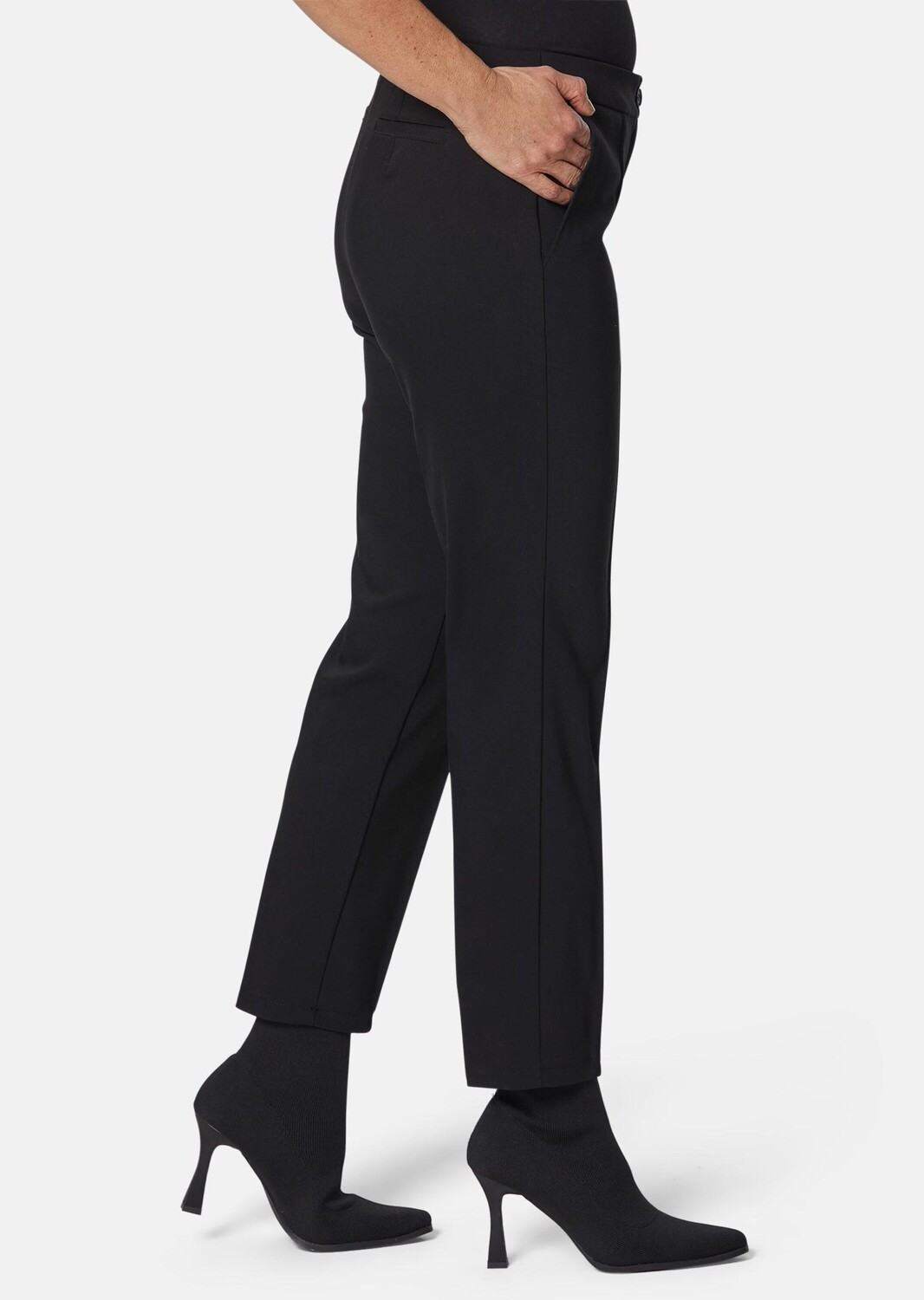 Брюки модного узкого кроя для универсального образа. Тянущиеся защипы спереди подчеркивают узкий силуэт. С узким поясом, карманами-бананами и прорезными карманами с оптическими линзами сзади. Изготовлен из эластичного материала, который гарантирует максимальный комфорт при ношении. Ширина по низу около 34 см. Узкая ширина штанин.