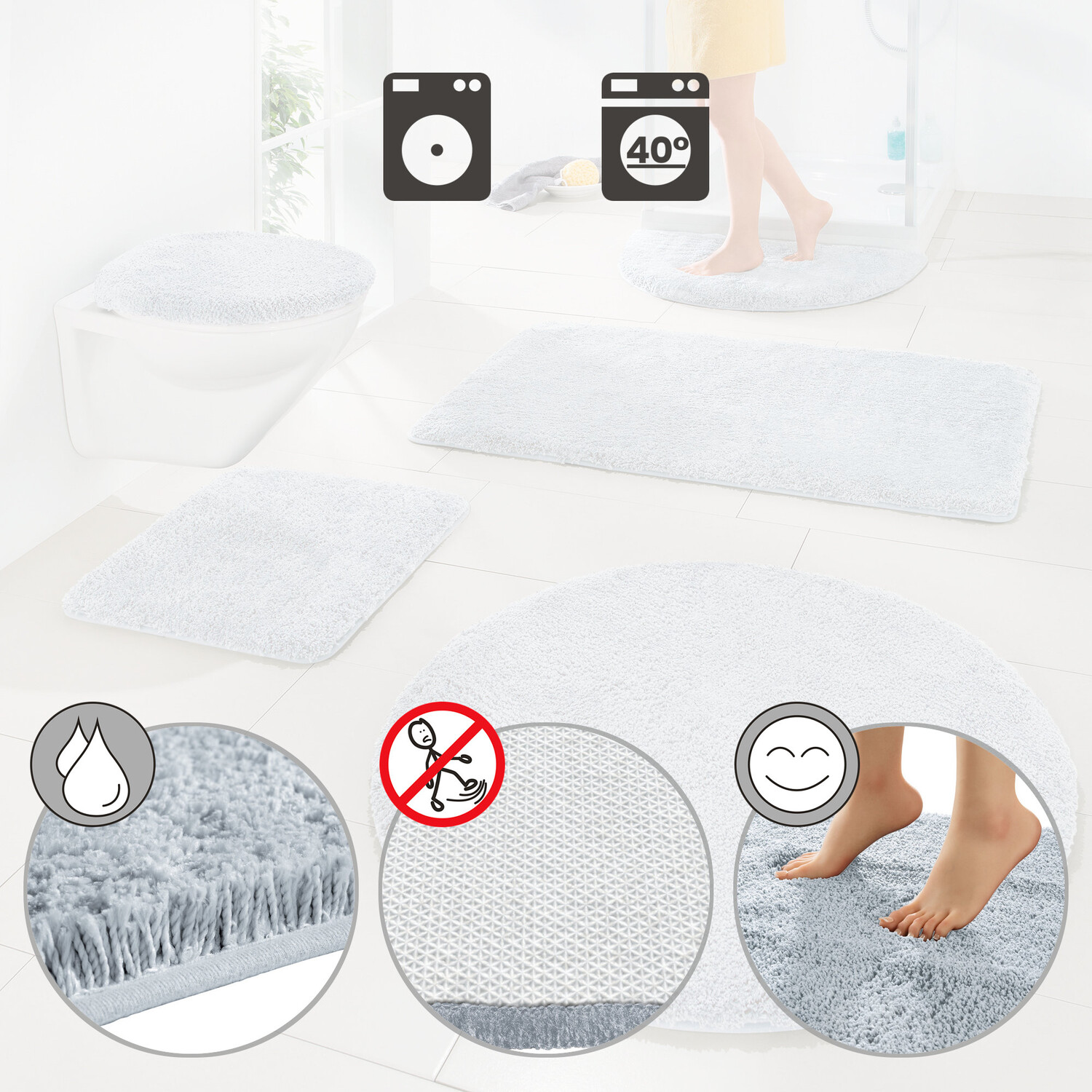 Коврик для ванной Эрвина Мюллера "Родос". С помощью этой мягкой однотонной серии вы сможете превратить свою ванную комнату в собственный оазис здоровья. Высокий густой ворс из уютной микрофибры так и манит ходить босиком. Этот материал чрезвычайно маловорсовый, ультрамягкий и впитывающий. Задняя часть с противоскользящим покрытием. Подходит для полов с подогревом.