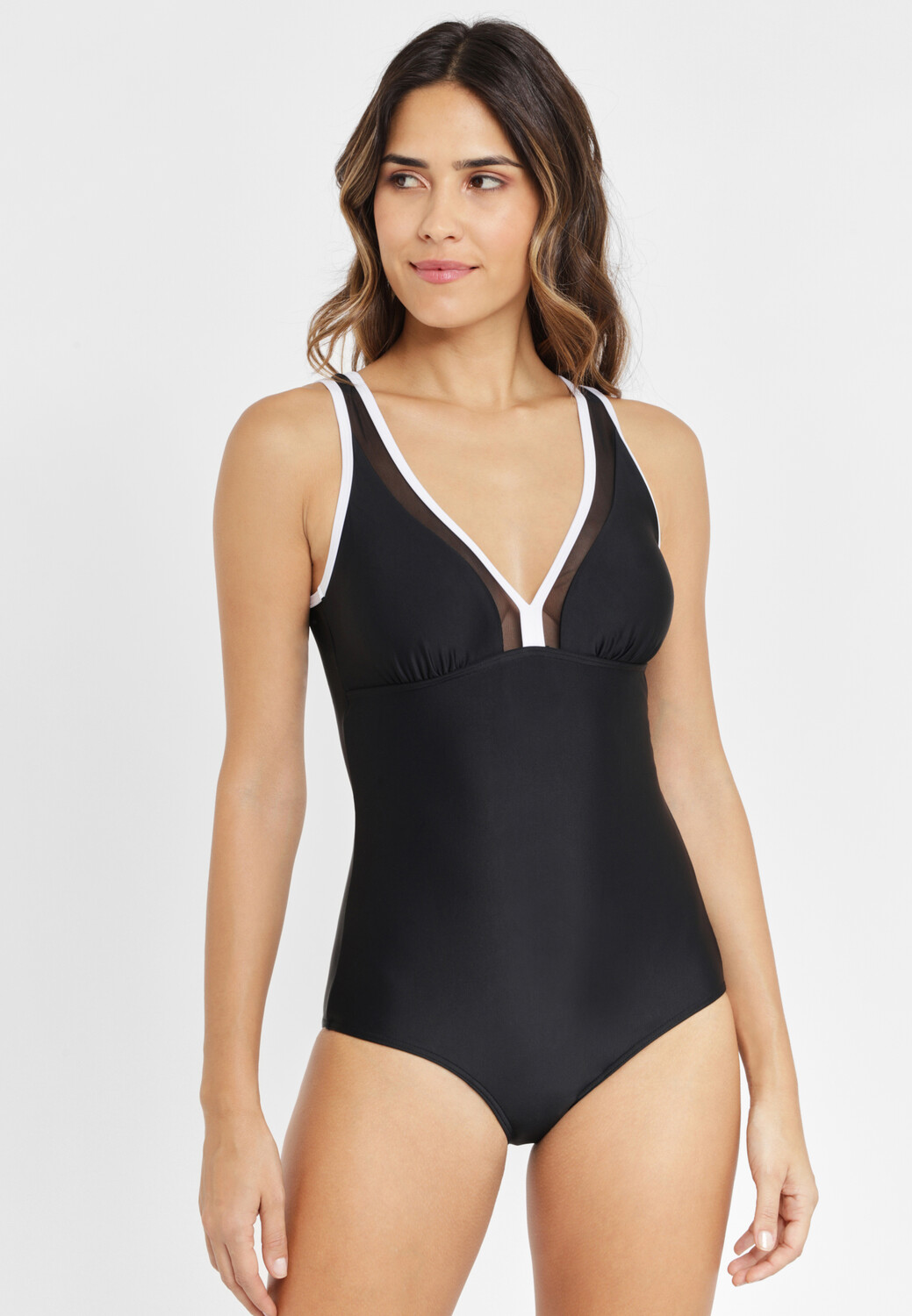 Купальник от Lascana с моделирующей вставкой спереди. Со вставками из прозрачной сетки и контрастной окантовкой. Абсолютно модный вид. Внешний материал: 80 % полиамид, 20 % эластан. Вставка лифа: 85 % полиамид, 15 % эластан. Подкладка: 100 % полиамид.