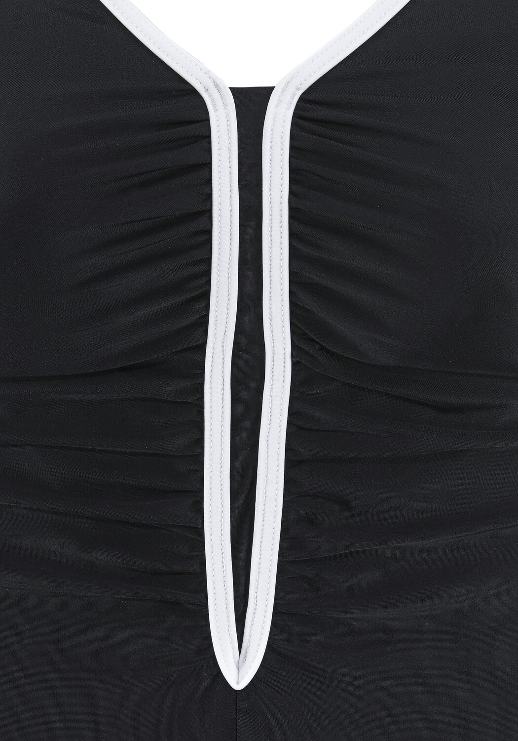 Купальник LASCANA в актуальном ретро-образе с контрастной окантовкой. Встроенные мягкие чашки, резинка под грудью и моделирующая вставка спереди для красивых пропорций и отличной пляжной фигуры.