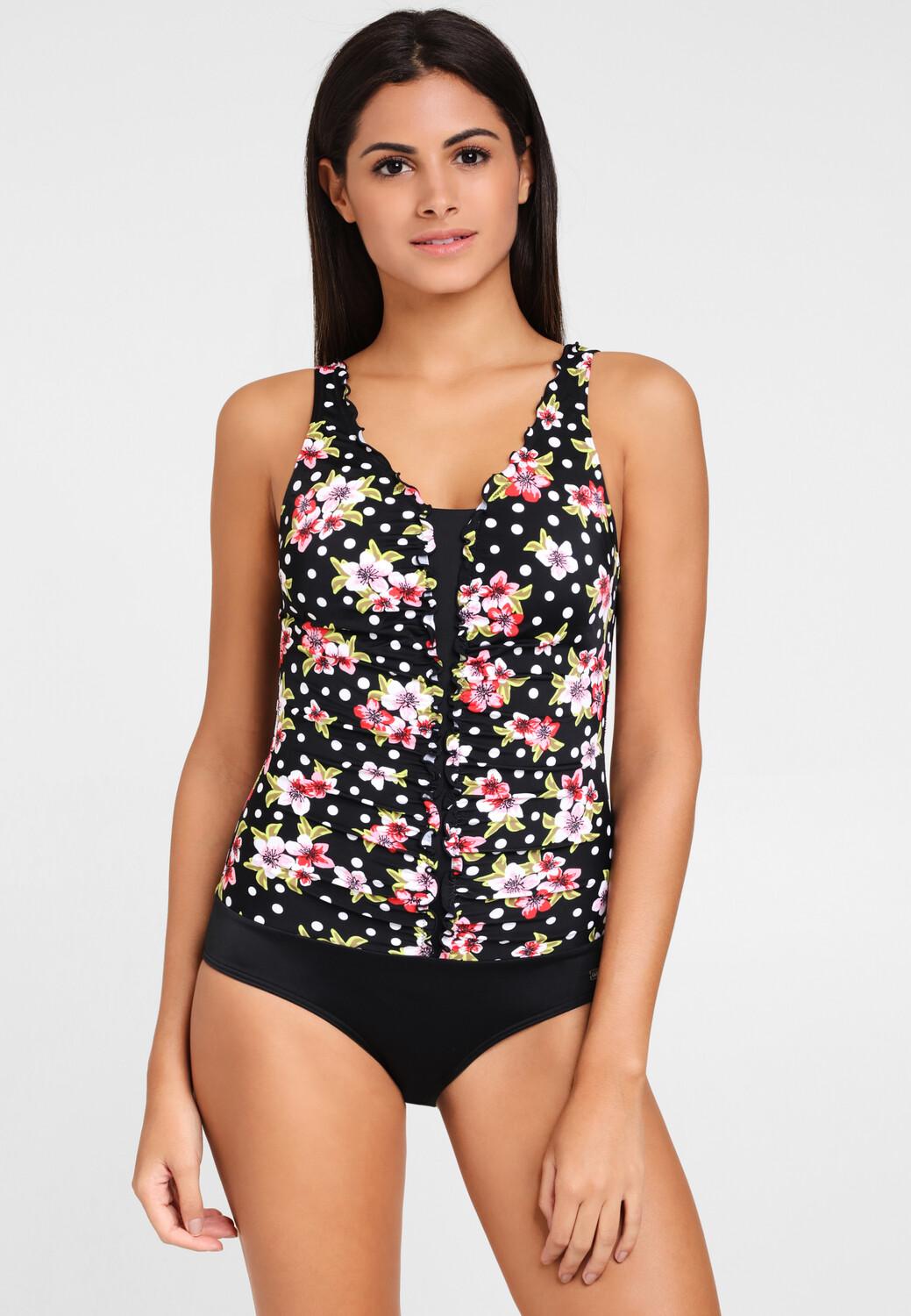 В красивом дизайне. Для модного образа на пляже. Со встроенными мягкими чашками и моделирующей вставкой для идеальной пляжной фигуры. Эластичная под грудью и регулируемые бретели. Область брюк на подкладке спереди.