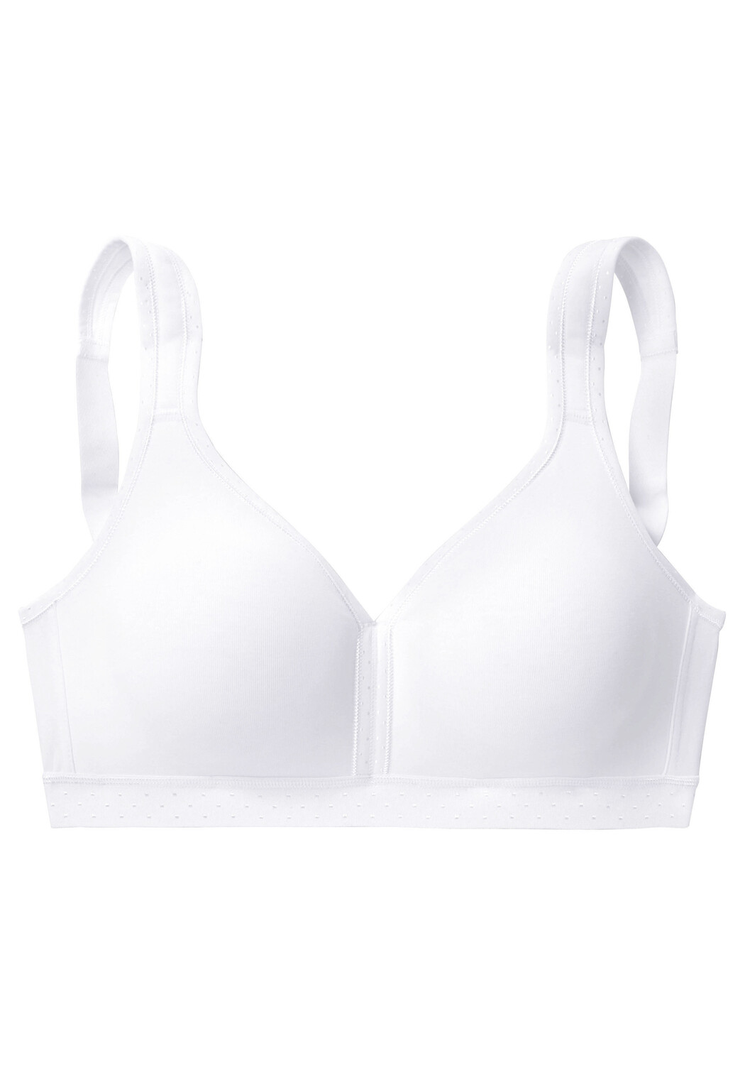 PETITE FLEUR: бюстгальтер без косточек, в упаковке 2 шт. Формованная чашка. Красивый точечный узор на поясе под грудью и на окантовке. Облегчающие широкие лямки для удобной посадки. Регулируемые бретели и застежка сзади. Бюстгальтер изготовлен из 90% хлопка, 10% эластана. Бюстгальтеры нельзя сушить в сушильной машине, так как регуляторы и кольца повреждаются под воздействием тепла и ломаются.