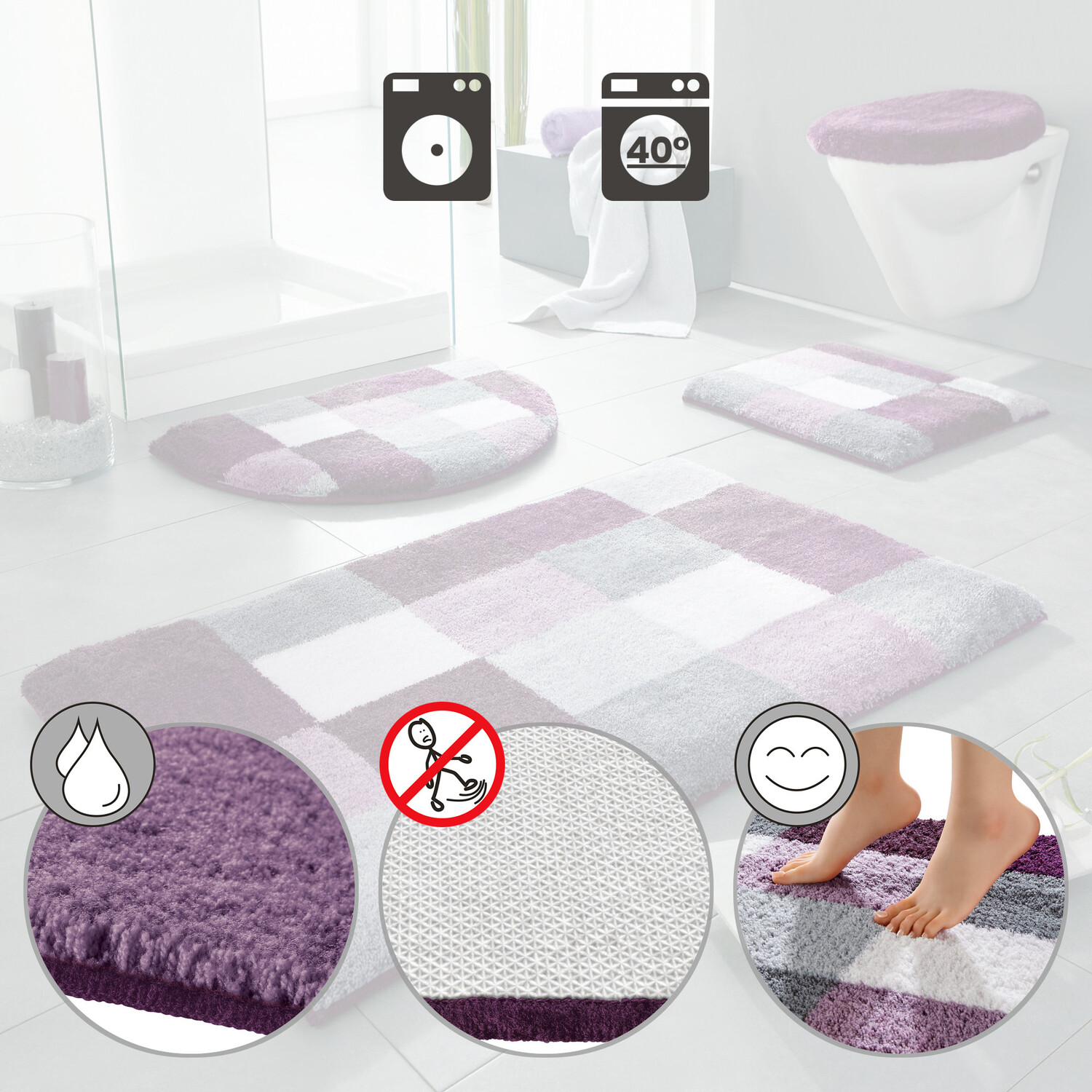 Шаблон туалета Эрвина Мюллера «Крит». Добавьте новые акценты в свою ванную комнату! Гармоничный по цвету графический дизайн притягивает взгляды. Он пушистый и мягкий, чтобы побаловать ваши ножки. С противоскользящим покрытием сзади. Также подходит для полов с подогревом.