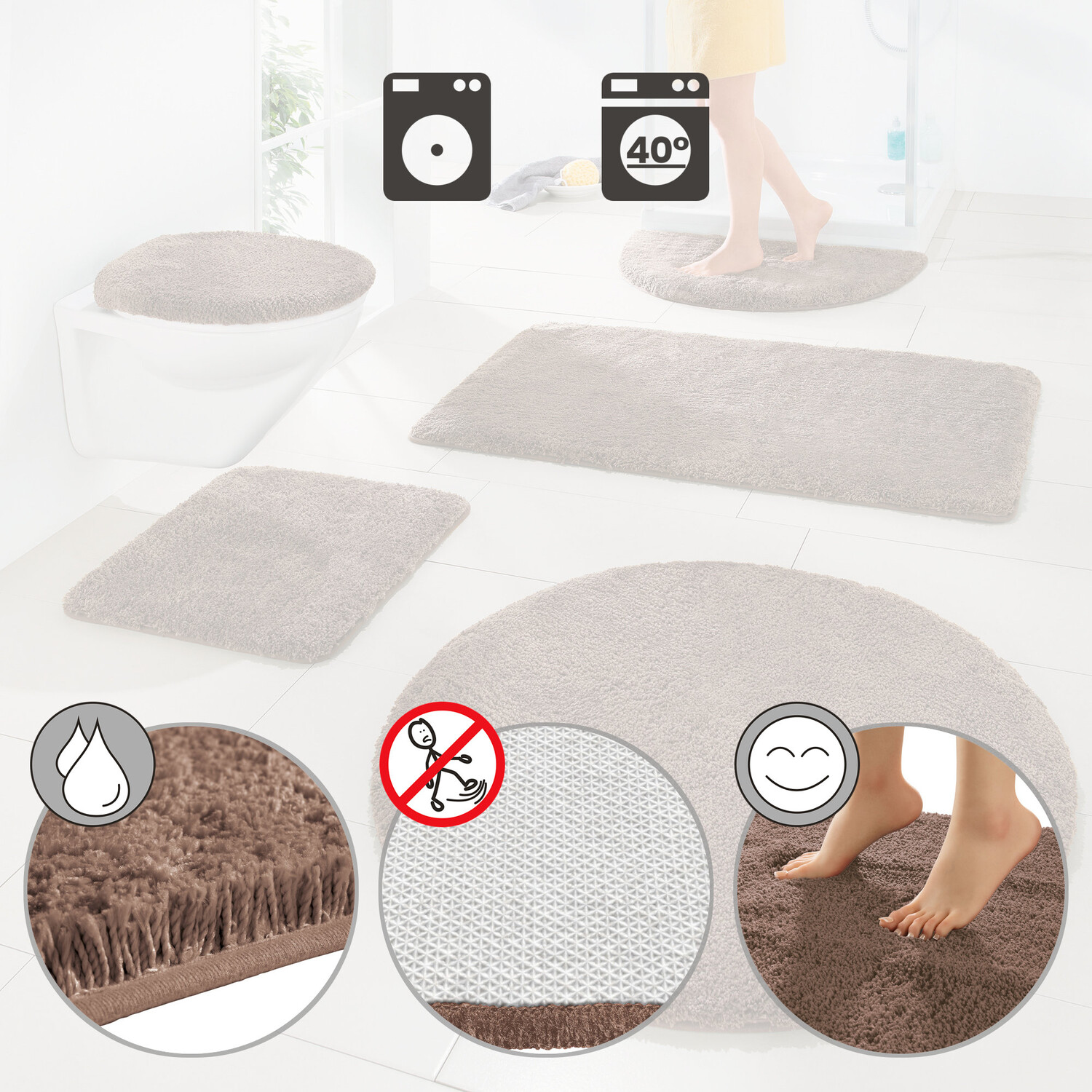 Шаблон туалета Эрвина Мюллера «Родос». С помощью этой мягкой однотонной серии вы сможете превратить свою ванную комнату в собственный оазис здоровья. Высокий густой ворс из уютной микрофибры так и манит ходить босиком. Этот материал чрезвычайно маловорсовый, ультрамягкий и впитывающий. Задняя часть с противоскользящим покрытием. С окантовкой по периметру. Подходит для полов с подогревом.