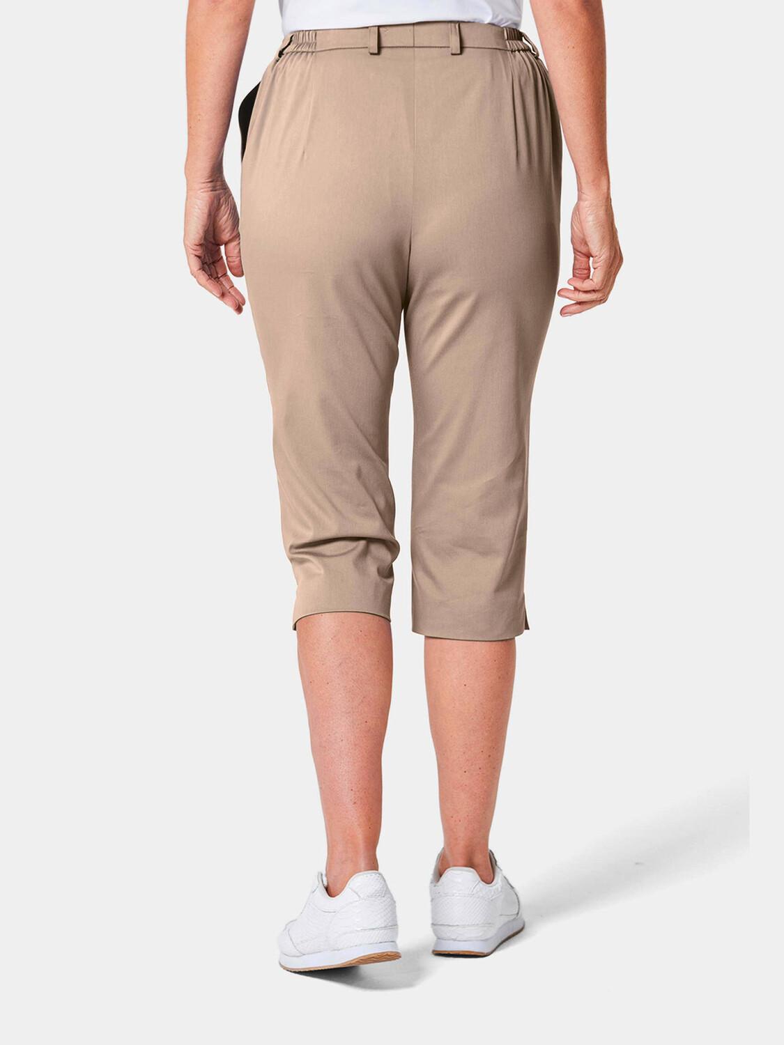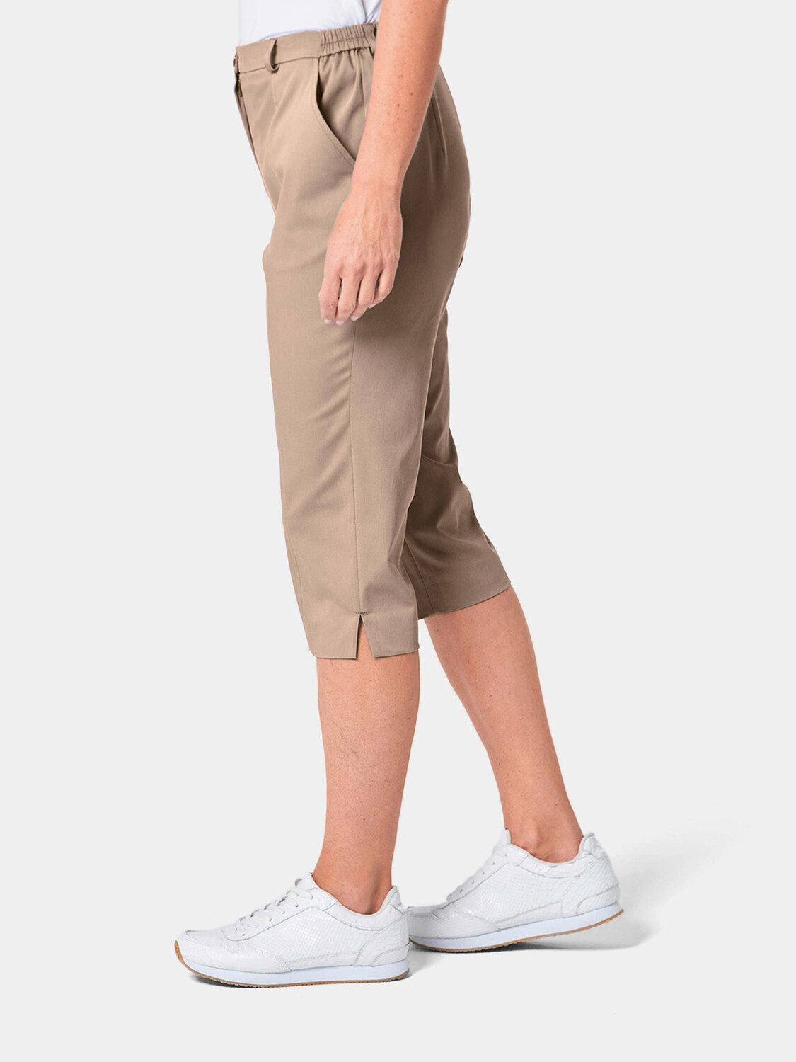 Укороченные атласные брюки летней длины капри. Оснащена Bionic Finish® — функциональной защитой волокон, которая делает модель водо-, масло- и грязеотталкивающей, а также воздухопроницаемой и удивительно простой в уходе. Благодаря эластану высокое качество очень удобно для движения. Боковой эластичный пояс отличается особой гибкостью и обеспечивает идеальную посадку. Практичные петли для ремня, боковые карманы, спортивные швы и элегантные боковые разрезы дополняют красивый образ. Закрывается на кнопку и молнию. Ширина по низу около 44 см. Узкая ширина штанин.