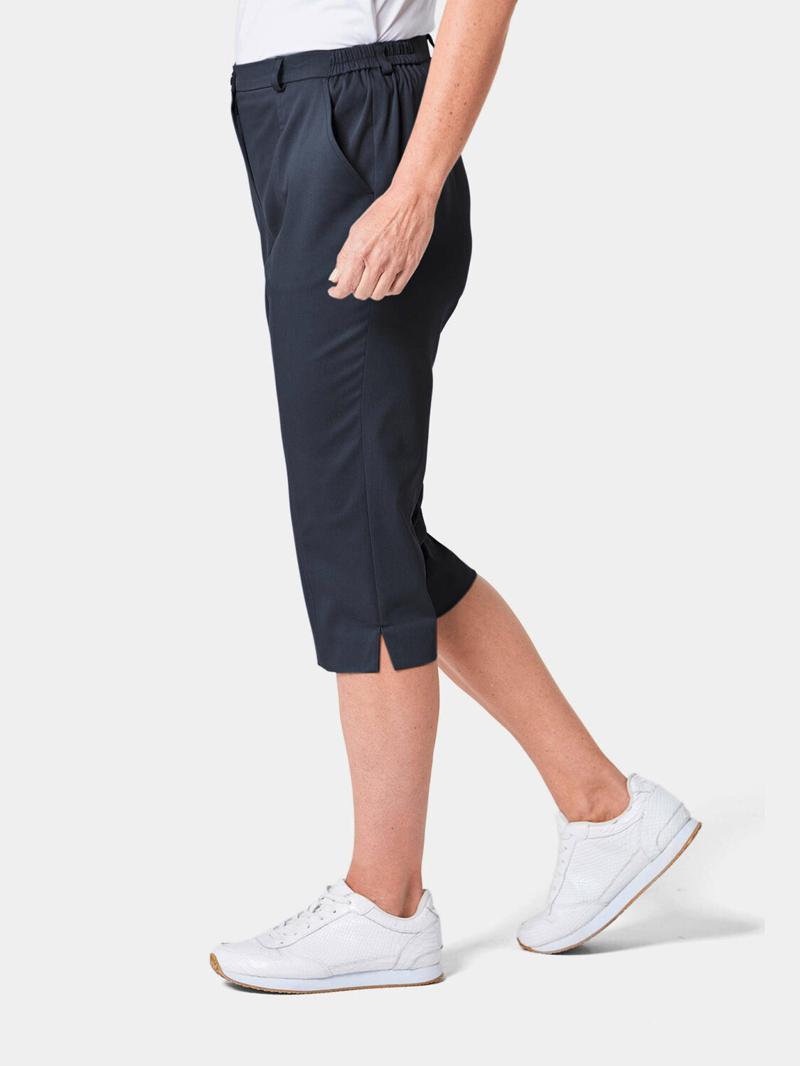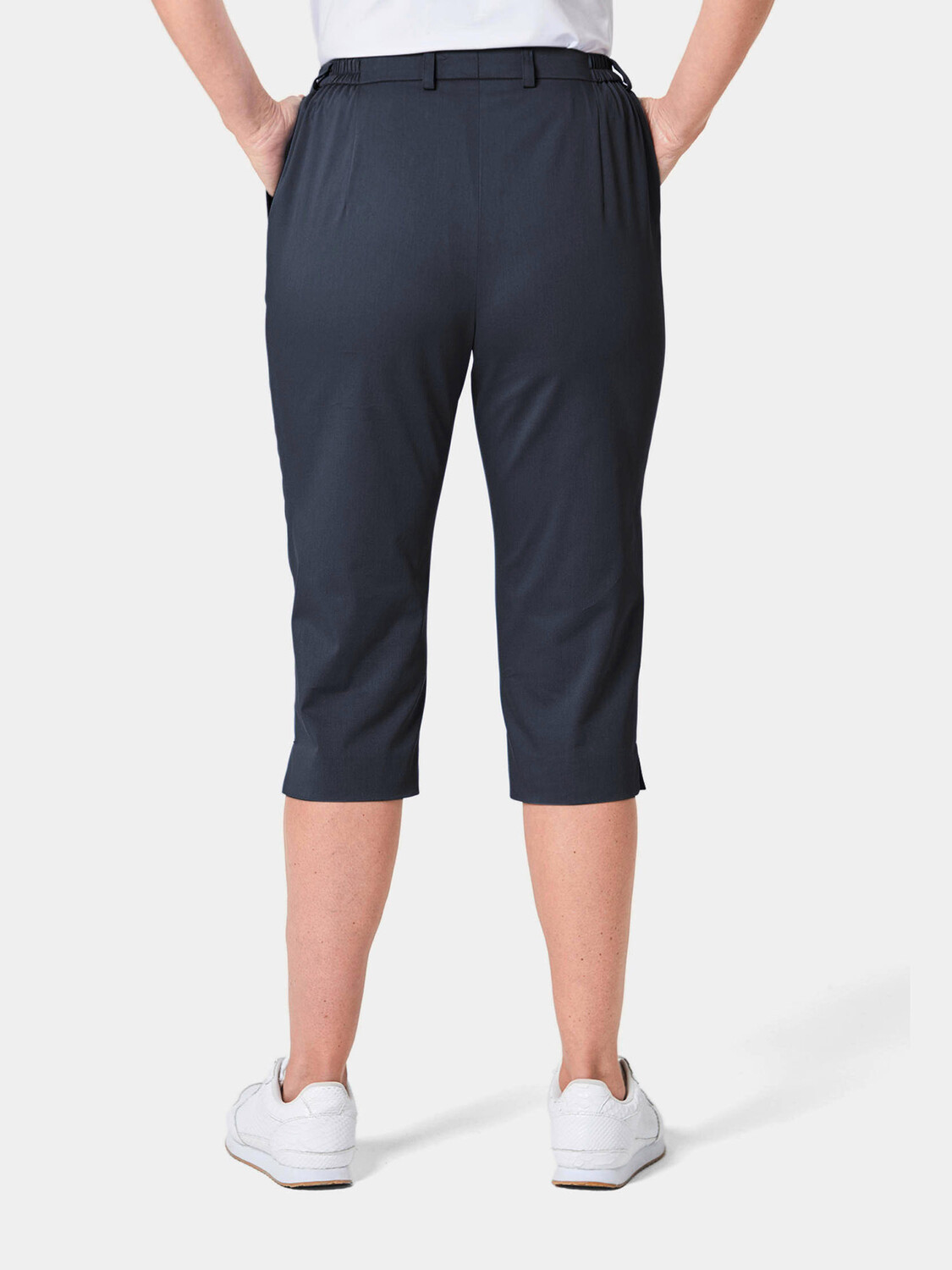 Укороченные атласные брюки летней длины капри. Оснащена Bionic Finish® — функциональной защитой волокон, которая делает модель водо-, масло- и грязеотталкивающей, а также воздухопроницаемой и удивительно простой в уходе. Благодаря эластану высокое качество очень удобно для движения. Боковой эластичный пояс отличается особой гибкостью и обеспечивает идеальную посадку. Практичные петли для ремня, боковые карманы, спортивные швы и элегантные боковые разрезы дополняют красивый образ. Закрывается на кнопку и молнию. Ширина по низу около 44 см. Узкая ширина штанин.