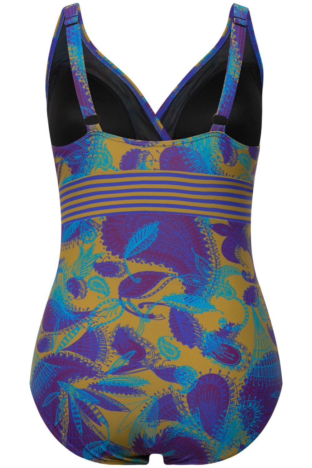 Купальник с мягкими чашками и спортивным принтом. Горизонтальные полосы под грудью, регулируемые бретели. Пояс под грудью, подкладка спереди. Из переработанного полиамида.