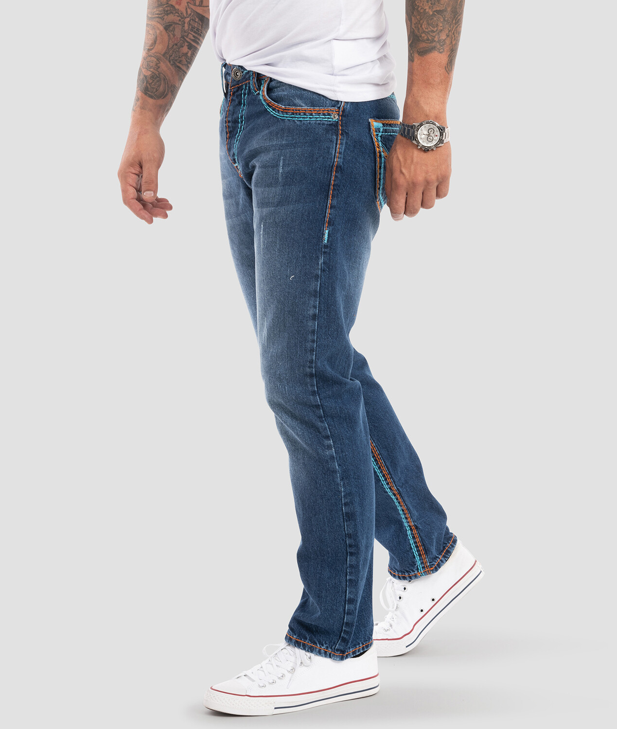 Серые джинсы прямого кроя – классика для повседневной работы, отдыха и отпуска! Многие из наших мужских джинсов от светлого до темно-серого цвета имеют классную окраску и выглядят поношенными. Брюки повседневного кроя имеют прямые брючины,