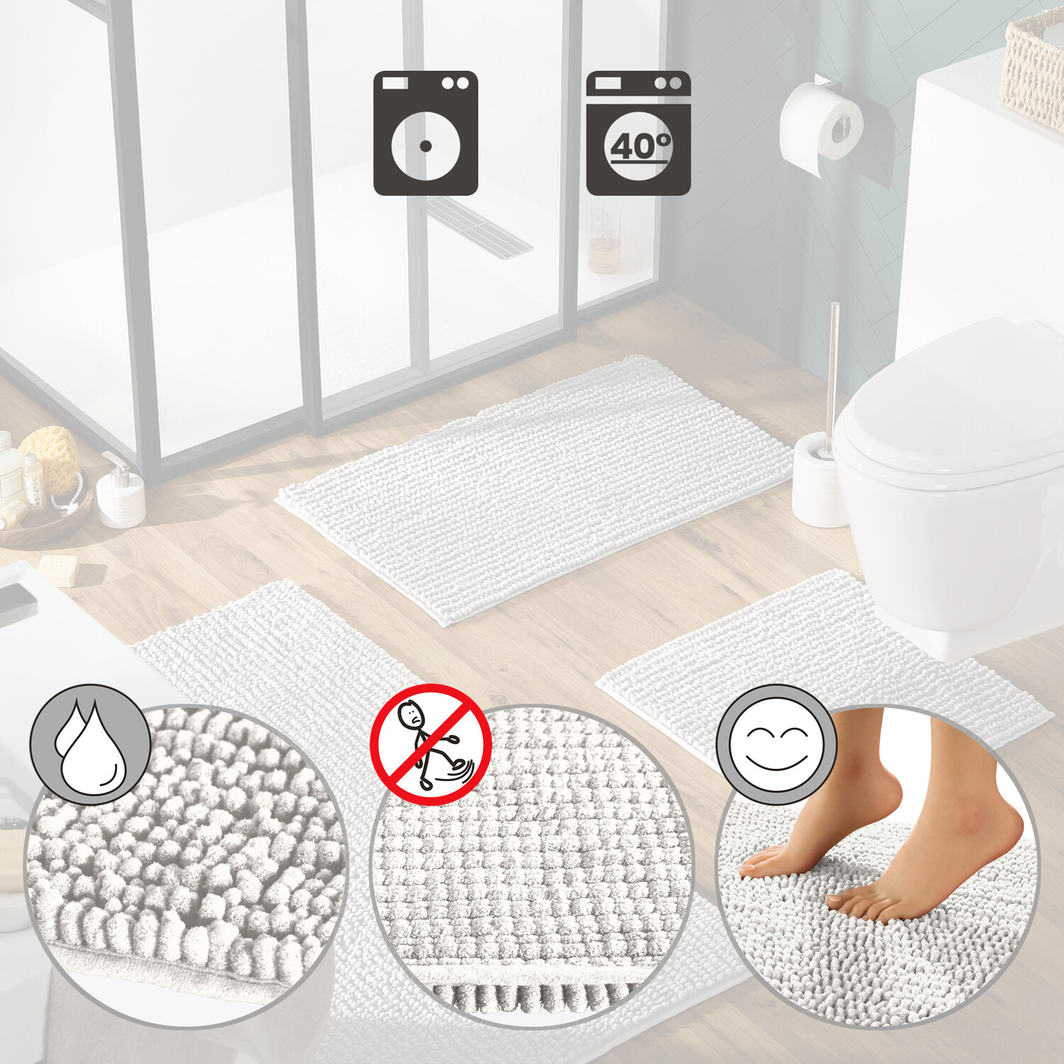 Коврик для унитаза REDBEST из синели из микрофибры "Арлингтон". Современный шаблон туалета не оставляет желать лучшего. Под ногами он кажется бархатистым и мягким. Длинные выступы разной толщины создают декоративную структуру High-Low и придают коже приятную мягкость, но при этом не скользят. Очень впитывает и быстро сохнет. С ленточной окантовкой по всему периметру. Надежное удержание обеспечивается специальной нескользящей термоплавкой спинкой.
