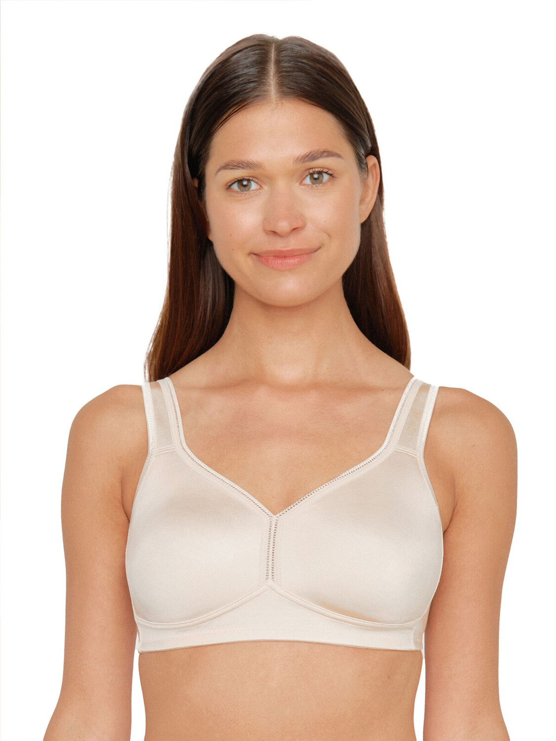Бюстгальтер без косточек от бренда Susa из серии Классика. Особенностями модели являются бесшовные формованные чашки, высокая центральная полоса, декоративная кайма, регулируемые по длине широкие рельефные бретели и застежка на крючок сзади. Susa производит нижнее белье классической формы с 1859 года. Их популярная модель CLASSIC обеспечивает максимальный комфорт при ношении благодаря высококачественным материалам и проверенной посадке.