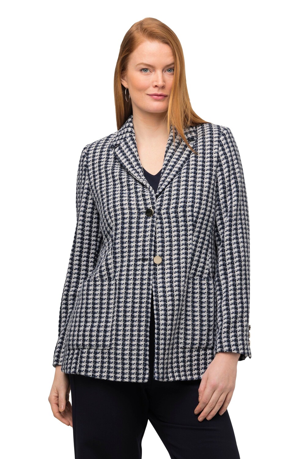 Блейзер классического кроя, выполнен из высококачественного букле. Слегка приталенный крой с воротником с лацканами и блестящими пуговицами. 2 накладных кармана, длинные рукава. Подкладка полностью.