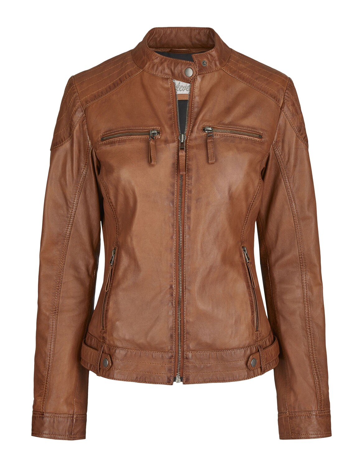 Эта классическая кожаная куртка от 7ELEVEN изготовлена из высококачественной кожи ягненка наппа растительного дубления. Ультрамягкий материал и тонкая внутренняя подкладка из чистого хлопка обеспечивают оптимальный комфорт. Декоративные детали, такие как стежка и кожаные ремни по нижнему краю, дополняют простой и элегантный дизайн. Специальная обработка поверхности придает легкий матовый блеск.