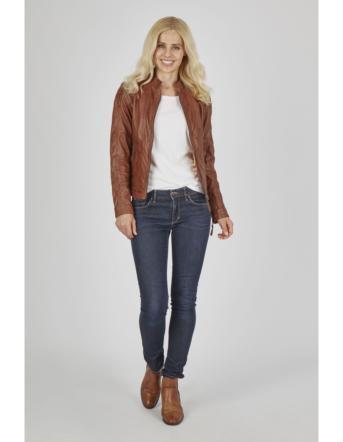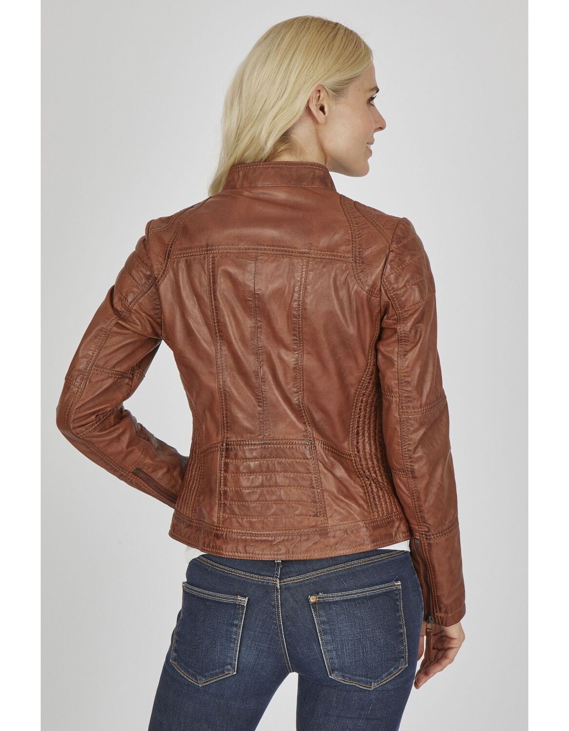 Эта повседневная кожаная куртка 7ELEVEN из высококачественной кожи ягненка наппа растительного дубления незаменима для всех, кто любит спортивный и стильный стиль и требует высочайшего качества. Индивидуальный крой, характерная стежка, карманы на молнии и небольшой воротник-стойка подчеркивают модный байкерский стиль.