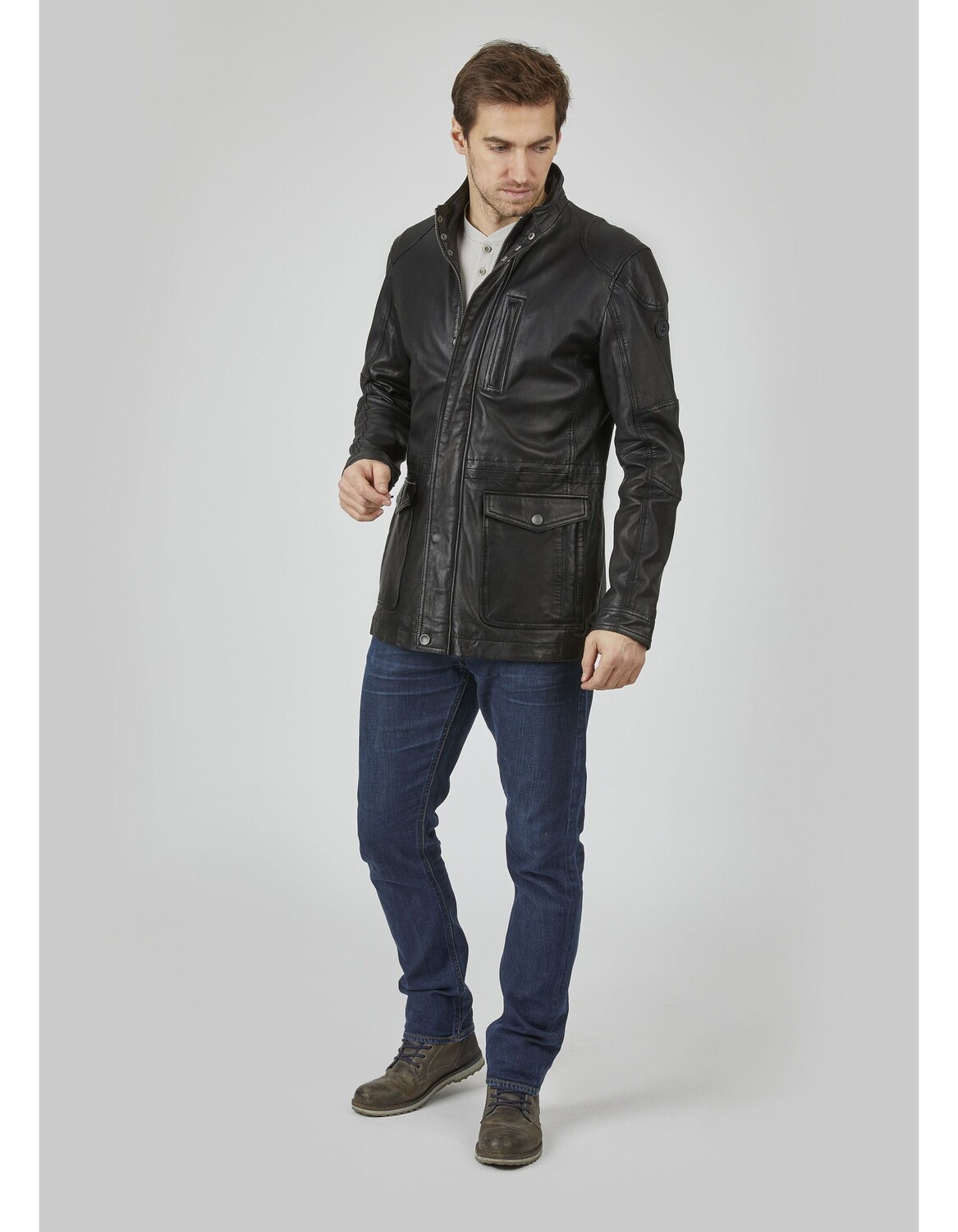 Эта современная мужская кожаная куртка от Бугатти подойдет на все случаи жизни. Благодаря удобной посадке он создает модный силуэт. Благодаря тонкой коже ягненка (растительного дубления) эта куртка чрезвычайно удобна. Практичные детали: карманы с клапанами и небольшой нагрудный карман, в котором можно хранить самые важные вещи. Молния также закрыта планкой на кнопках, чтобы лучше защитить вас от ветра. // блокирует ветер. и завершает дизайн.