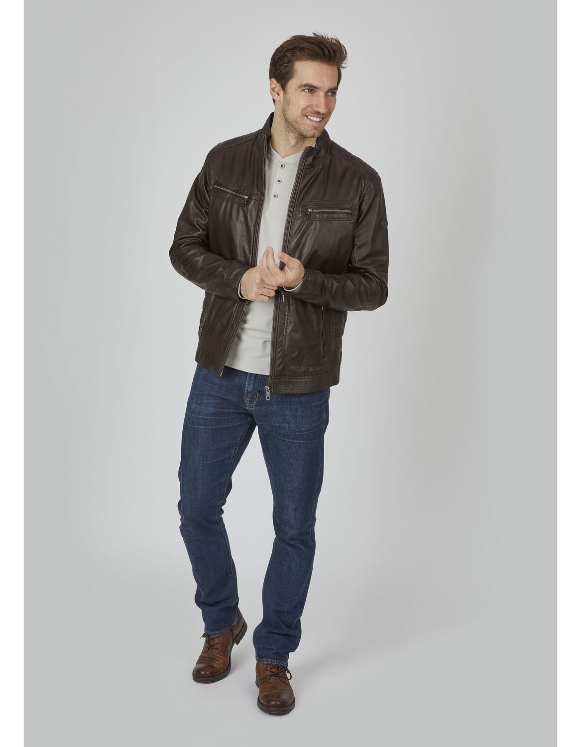 С этой крутой мужской кожаной курткой от Бугатти вы сможете расставить модные акценты. Он изготовлен из высококачественной овечьей кожи растительного дубления. Классический воротник-стойка на молнии придает модели спортивный вид. Декоративные швы и молнии на рукавах расставляют модные акценты. Карманы на молнии не только практичны, но и прекрасно вписываются в дизайн. Просто кожаная куртка на каждый день.