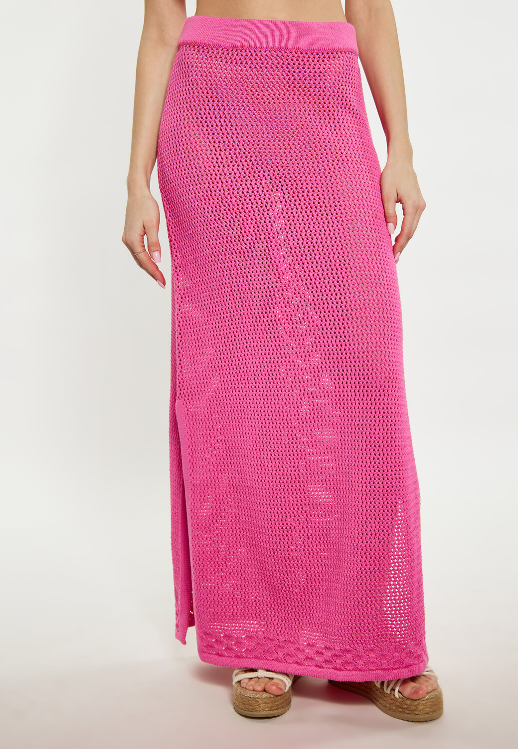 Представляем нашу потрясающую женскую юбку с завышенной талией, выполненную из нежного трикотажа и украшенную замысловатым ажурным узором, создающим полупрозрачный вид. Облегающий силуэт слегка расклешен к низу. Прочный и эластичный пояс обеспечивает удобную и надежную посадку, а декоративный край придает этой незаменимой вещи уникальный вид.