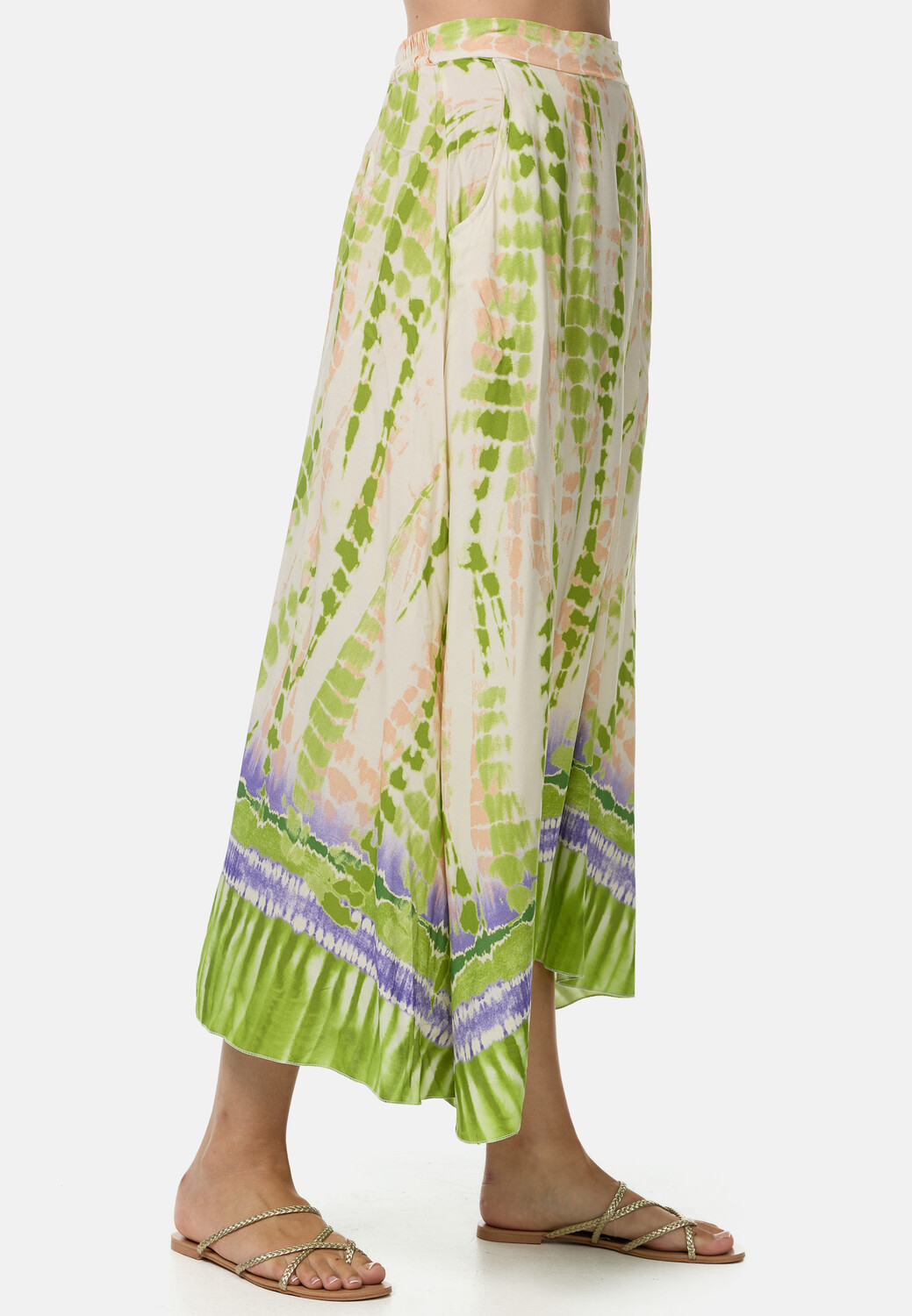 Легкая летняя юбка длиной ¾ макси в модном дизайне в стиле батик. Воздушная юбка-макси кроя А-силуэта красиво облегает ноги. Пояс модной длинной юбки-макси эластичен сзади и оптимально адаптируется к фигуре. Передний пояс лежит гладко. Юбка батик имеет длину до икры и изготовлена из 100% высококачественной вискозы. Два боковых кармана обеспечивают комфорт и место для хранения вещей.