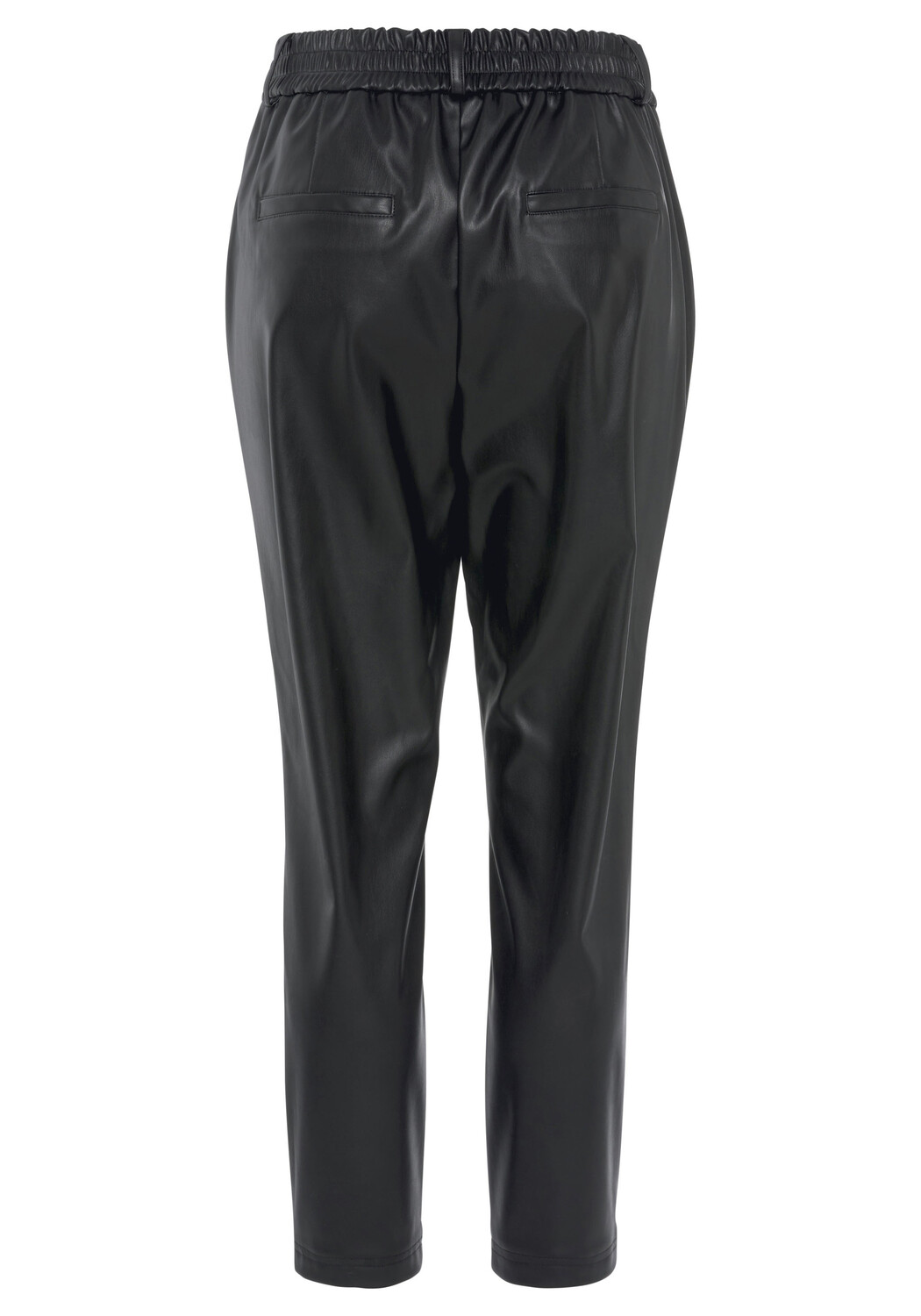 Спортивные брюки из кожи от Lascana. Эластичный пояс с гладкой передней частью и кулиской. Боковые карманы. Конический крой. Слегка блестящая искусственная кожа.