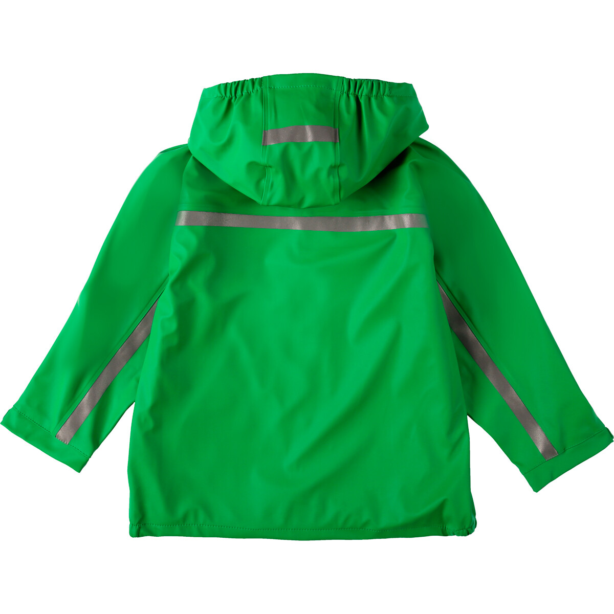 Дождевик имеет отстегивающийся капюшон и молнию. Дождевик гладкий, мягкий внутри и не прилипает к коже. Светоотражающие полосы спереди и сзади обеспечивают безопасность ребенка.