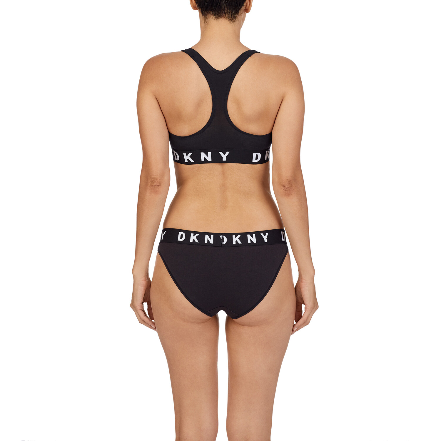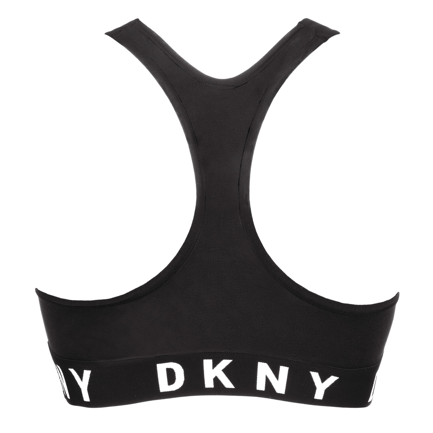 Спортивный бюстгальтер без косточек без косточек от DKNY. В этом бралетте вы будете чувствовать себя комфортно в течение всего дня. Широкие эластичные манжеты с большим логотипом DKNY визуально выделяют этот бюстгальтер и делают его спортивным компаньоном. Бралетт не имеет застежки, но бретели сконструированы таким образом, чтобы не соскальзывать с плеч и обеспечивать оптимальную поддержку.