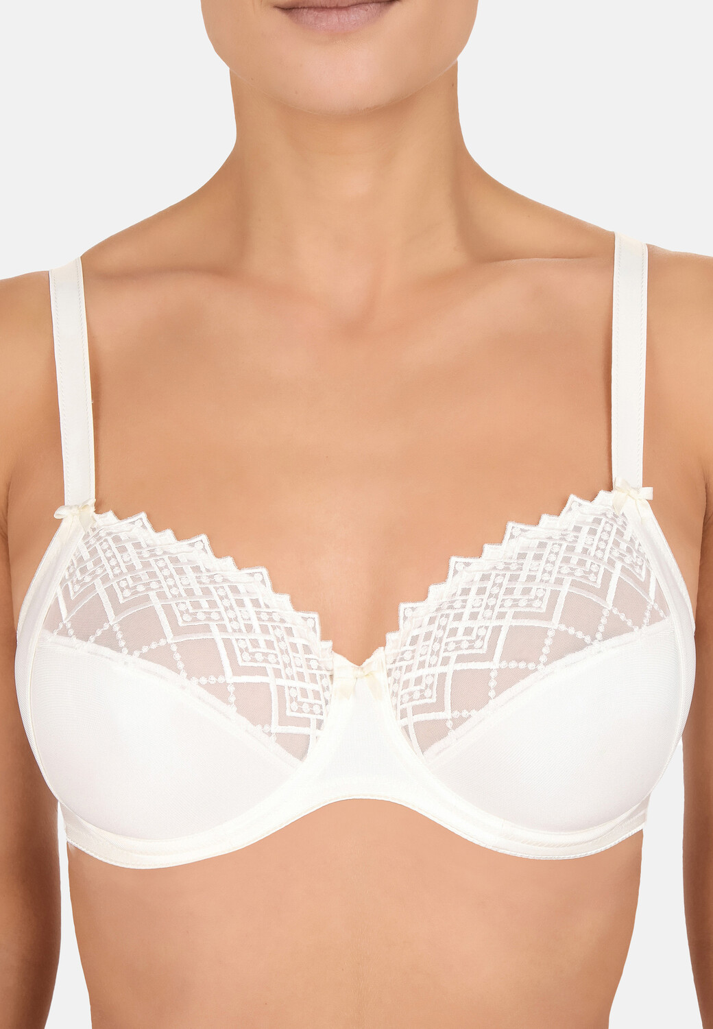 Этот бюстгальтер на косточках из серии Joy – это неподвластная времени элегантность и идеальная посадка. Современная графичная вышивка переливается тон в тон мягким блеском, отличную поддержку обеспечивает трехчастная форма с боковой чашкой.