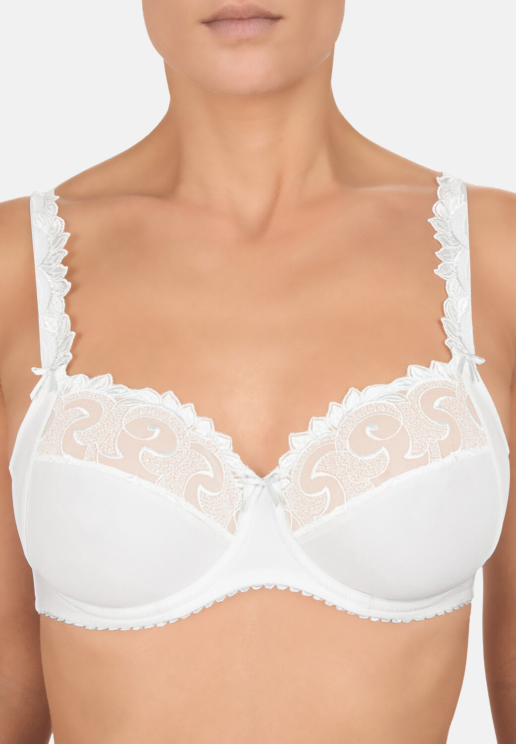 Этот бюстгальтер на косточках из коллекции Rhapsody символизирует чистую гармонию благодаря сбалансированной вышивке в виде листьев и декоративным бретелям. Создает женственное полное декольте и оптимально поддерживает грудь благодаря трехчастному крою.