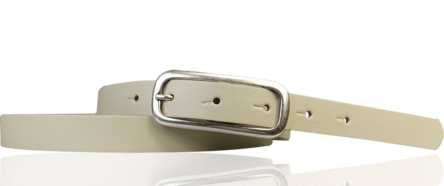 Классический узкий женский ремень с красивой удлиненной пряжкой. Ремешок шириной около 2 см изготовлен из натуральной кожи.