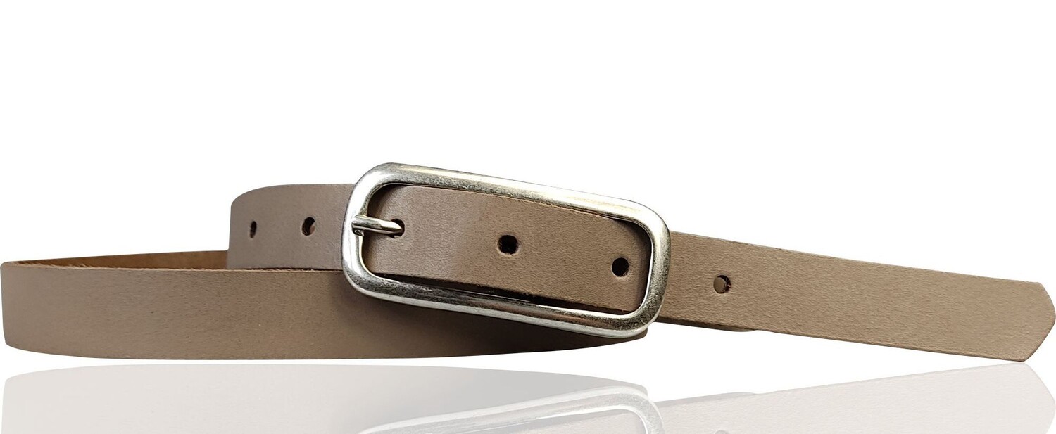 Классический узкий женский ремень с красивой удлиненной пряжкой. Ремешок шириной около 2 см изготовлен из натуральной кожи.
