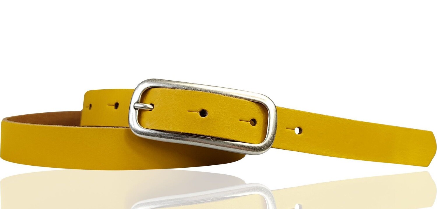 Классический узкий женский ремень с красивой удлиненной пряжкой. Ремешок шириной около 2 см изготовлен из натуральной кожи.
