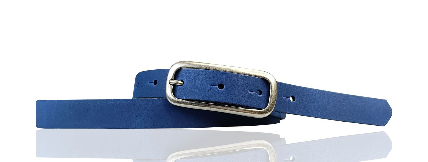 Классический узкий женский ремень с красивой удлиненной пряжкой. Ремешок шириной около 2 см изготовлен из натуральной кожи.