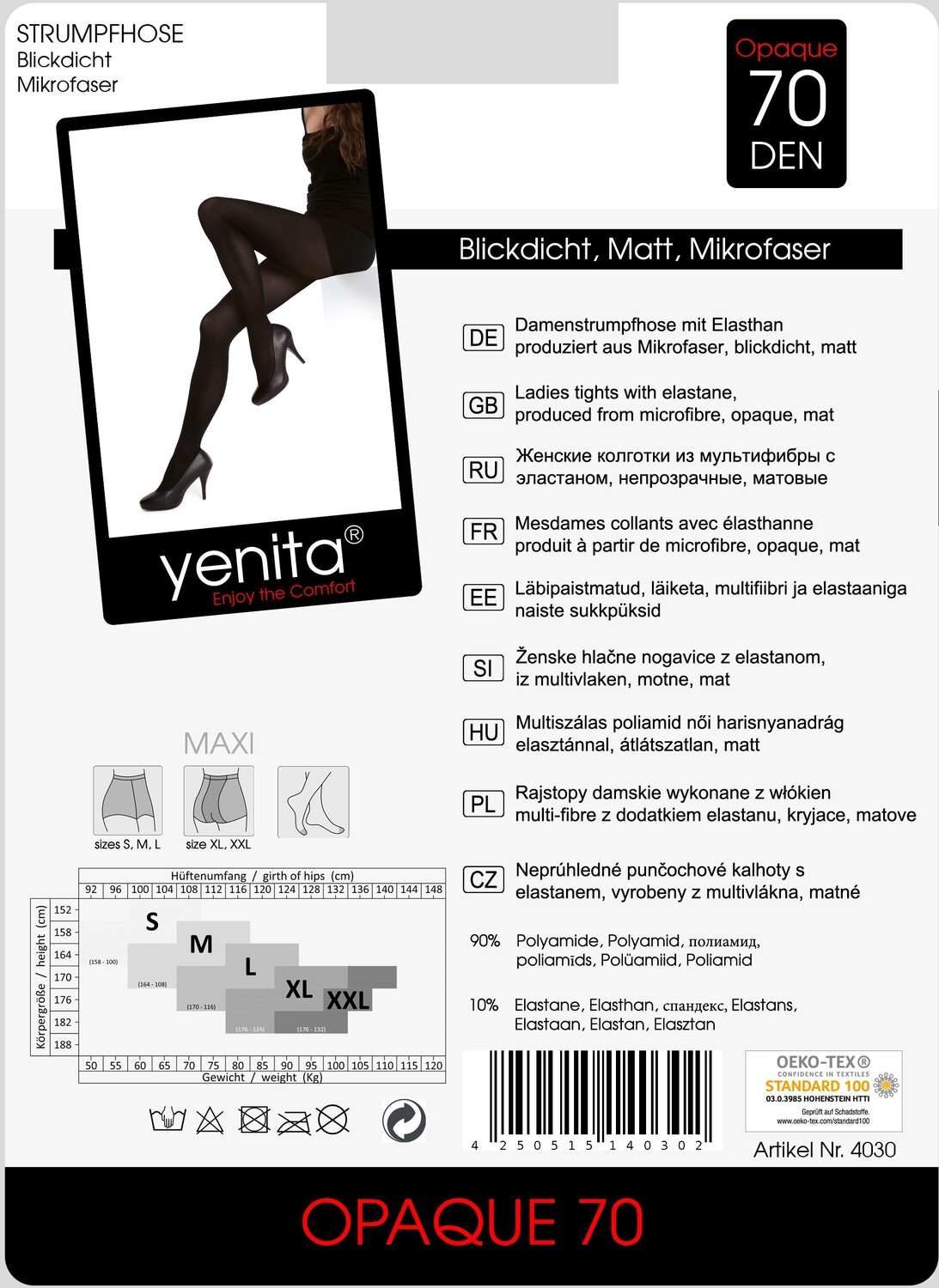 Незаменимый модный аксессуар: женственные колготки Yenita – незаменимая вещь в переходный период. Особенно мягкие, непрозрачные колготки плотностью 70DEN создают красивую, визуально удлиняющую ногу. Высококачественная микрофибра, плоские швы, манжеты и ластовицы не врезаются и гарантируют оптимальный комфорт. Непрозрачные колготки можно комбинировать по-разному, и они особенно хорошо смотрятся с элегантными и современными юбками. Просто великолепная постановка!