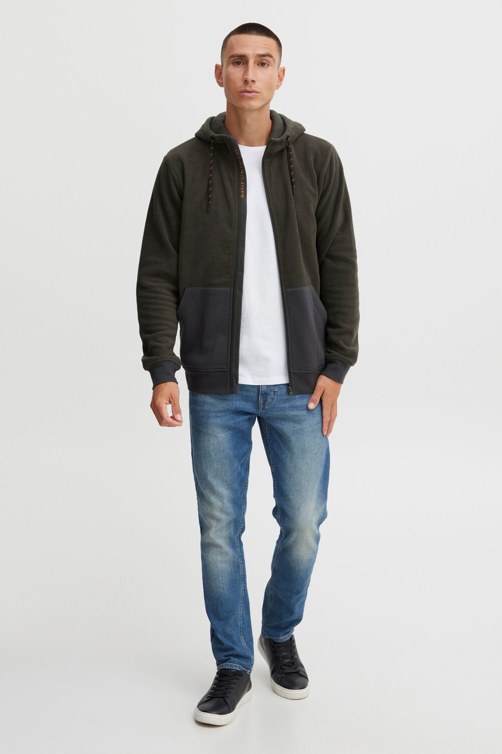 ДЕТАЛИ И ОСОБЕННОСТИ: Флисовая куртка без подкладки, высокий воротник, капюшон на кулиске, круглые хлопковые шнуры, застежка на пластиковую молнию, тканевая нашивка, эластичные манжеты с ребристыми манжетами, эластичный пояс, два накладных кармана, высококачественный флисовый материал, стандартный крой. , двухцветные завязки с металлическим наконечником.