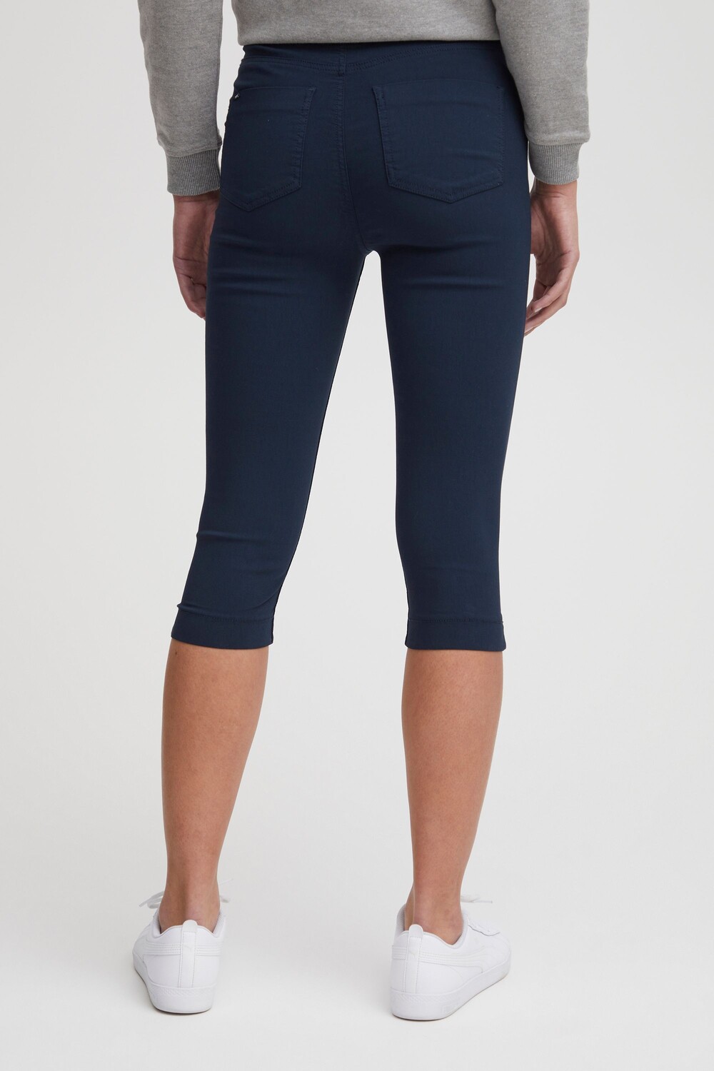 ДЕТАЛИ И ОСОБЕННОСТИ: Брюки-капри, облегающий крой, два ложных боковых кармана и два задних кармана, металлическая нашивка, эластичный пояс, высококачественная смесь вискозы с эластичным наполнением.