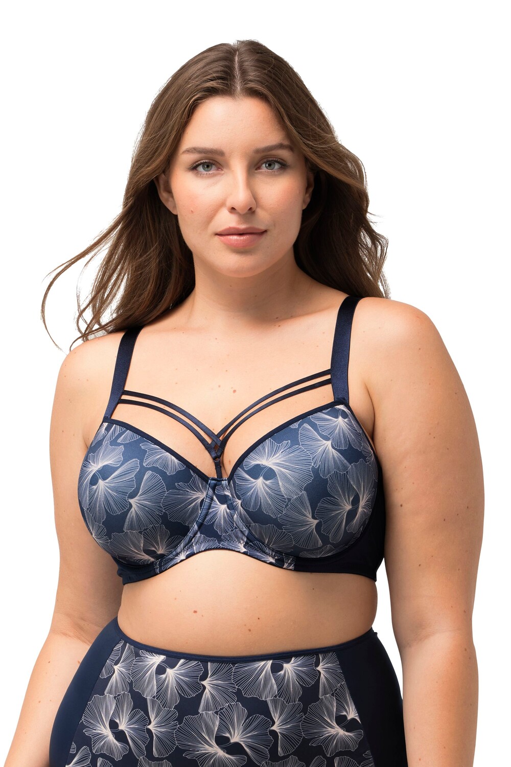 Бюстгальтер на косточках, мягкая чашка с принтом гинкго и сексуальные бретели с декольте. Регулируемые бретели.