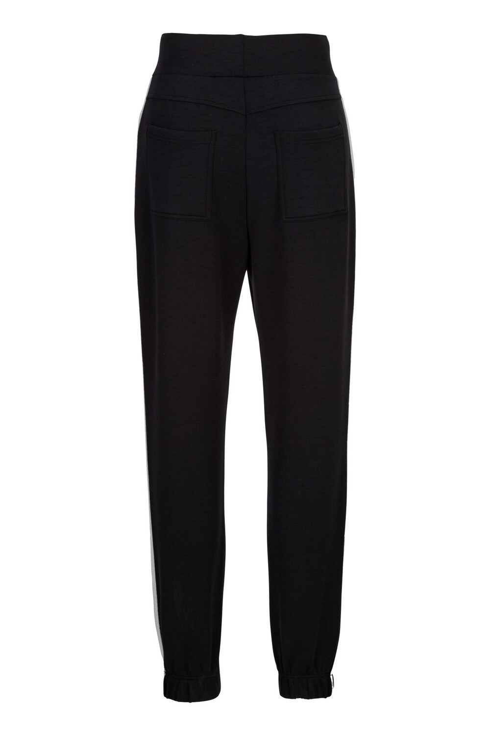 Спортивные брюки с ребристыми манжетами на штанинах, заканчивающимися белой кулиской.