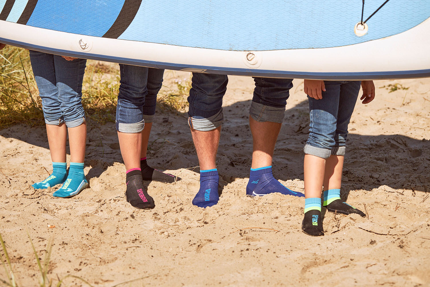 Носки для пляжа, плавания и воды Beachies®HX Ваттовое море предъявляет особые требования к обуви, среди прочего, из-за всасывающего эффекта грязи (илисти). BEACHIES?® оптимально адаптируются к форме стопы, имеют нескользящую прочную подошву, а также отвечают экологическим требованиям для походов по объекту Всемирного природного наследия Ваддензе. Будь то острые ракушки, острые камни или неровные поверхности — прочная и очень гибкая эластомерная подошва обеспечивает надежную защиту и в то же время обеспечивает достаточную свободу движений пальцам ног и ступней. Для ощущения беззаботности босиком. Пляжные носки Beachies® идеально подходят для серфинга, дайвинга, подводного плавания и гребли стоя, но их подошва HX Triplex также обеспечивает сцепление со скользкой плиткой в бассейне. Он также обеспечивает надежную поддержку и защиту (например, от укусов насекомых и острых камней) в саду и во время досуга, например, занятий гимнастикой или прыжков на батуте. 75 % полиэстер/15 % эластан/10 % полиамид Дополнительную информацию можно найти здесь: https://beachies.de/produktinformationen//- Защита от острых ракушек, острых камней, игл морских ежей, горячего песка