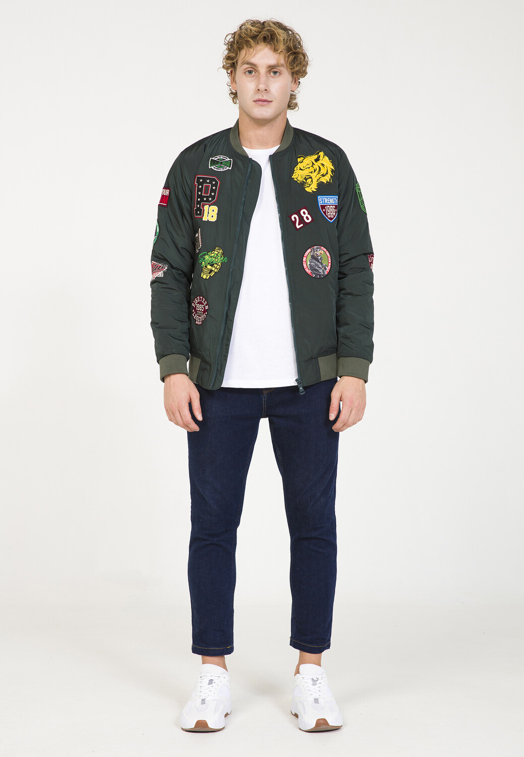 Эффектные нашивки придают этому бомберу особенный вид. Имеет повседневные боковые карманы, прочные ребристые манжеты по краю и на рукавах, а также застежку-молнию. Отличная куртка в уличном стиле.