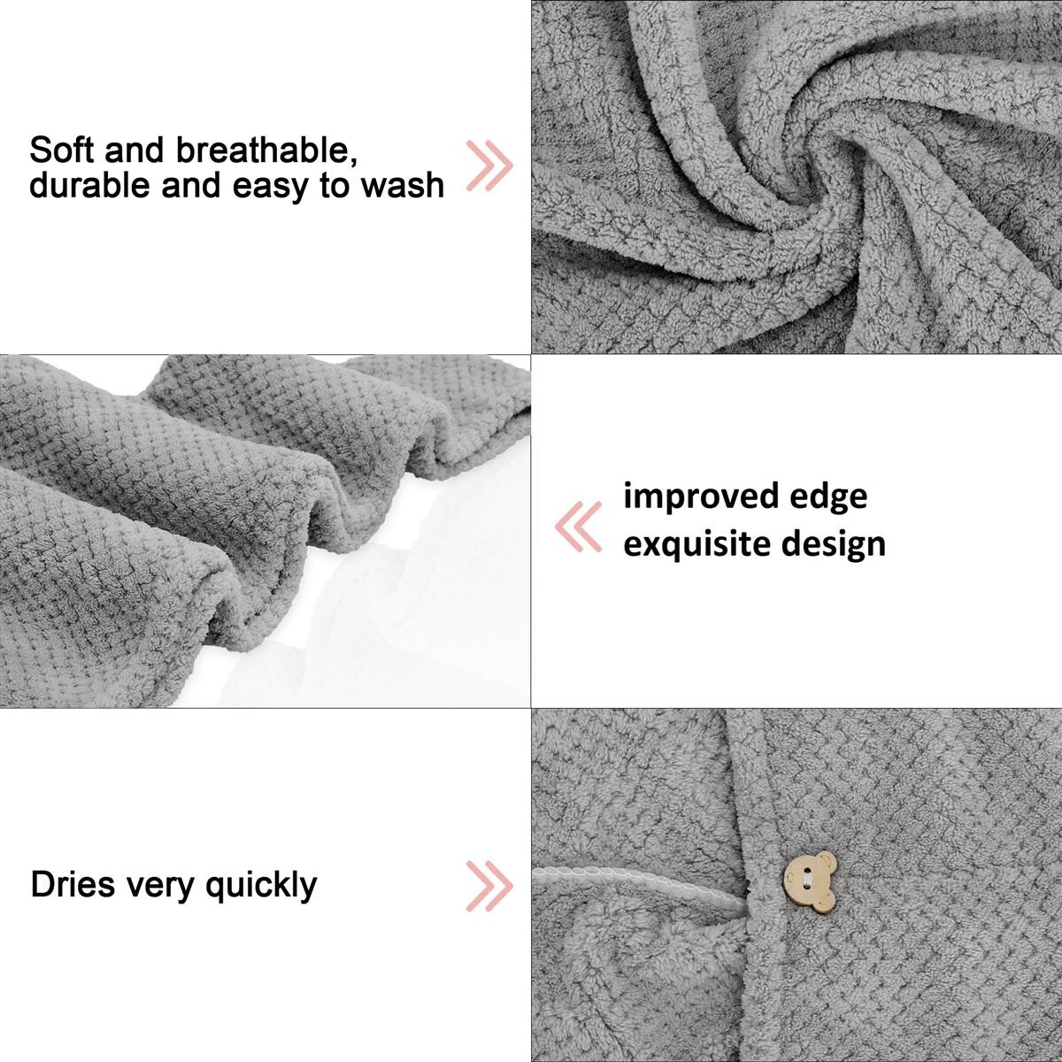 Сэкономьте время с нашим тюрбаном для волос и аккуратно высушите волосы благодаря впитывающим и мягким материалам. Это означает, что при сушке феном ваши волосы подвергаются меньшему прямому нагреву, что помогает уменьшить их повреждение.