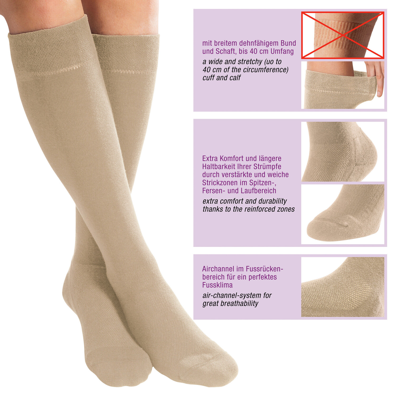 Носки FußGut Unisex Kniestrümpfe 2 шт, бежевый