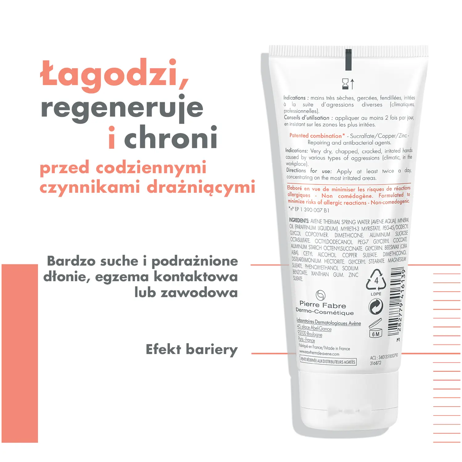 СоставТермальная вода Avene (Avene Aqua). Минеральное масло (жидкий парафин). Мирет-3 Миристат. Сополимер ПЭГ-45/додецилгликоля. Диметикон. Октасульфат алюминия сахарозы. Октилдодеканол. Peg-7 глицерилкокоат. Октенилсукцинат алюминиевого крахмала. Глицерин. Пчелиный воск (Cera Alba). Цетиловый спирт. сульфат меди. Диметиконол. Дистеардимониум гекторит. Глицерил стеарат. Сульфат магния. Феноксиэтанол. Бензоат натрия. Вода (Аква). Ксантановая камедь. Сульфат цинка.