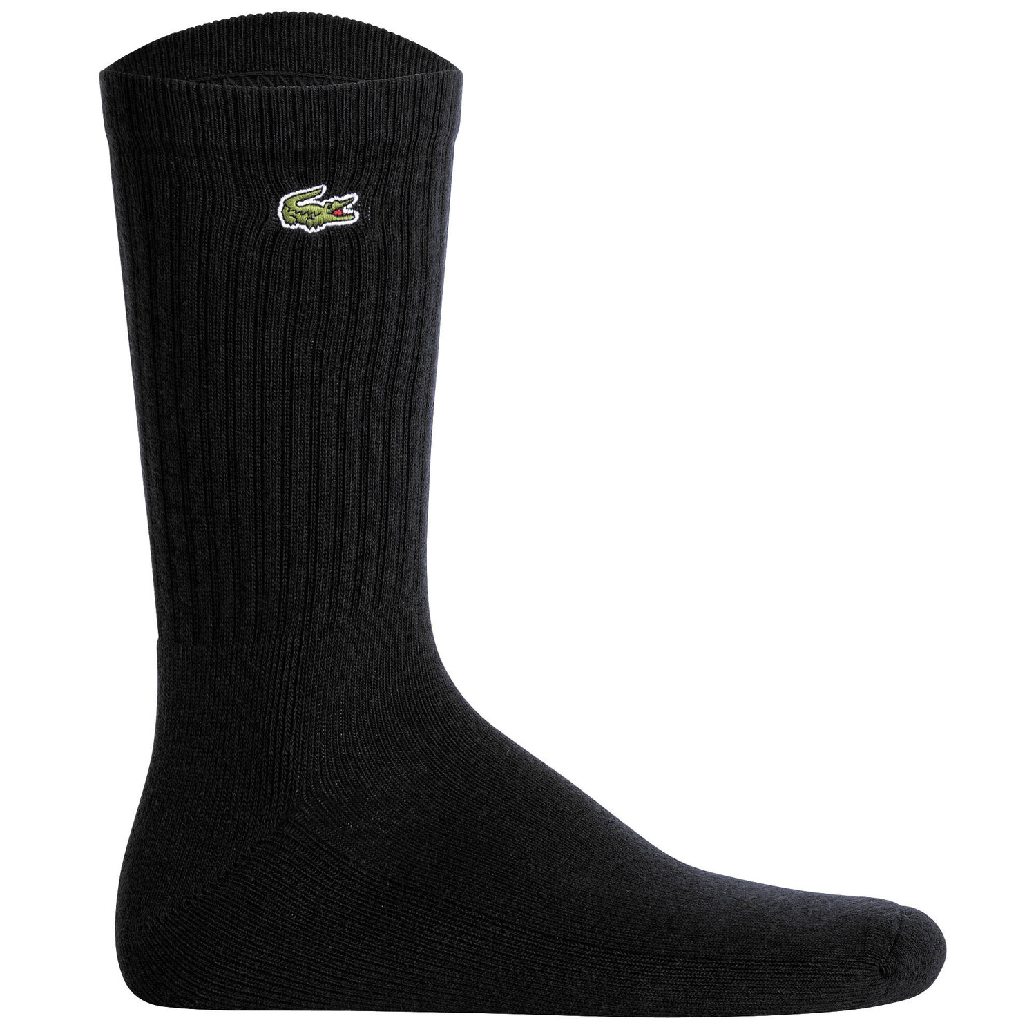 Теннисные носки унисекс LACOSTE из высококачественной смеси хлопка в упаковке по 6 штук. Однотонный цвет с маленькой этикеткой LACOSTE из крокодиловой кожи.
