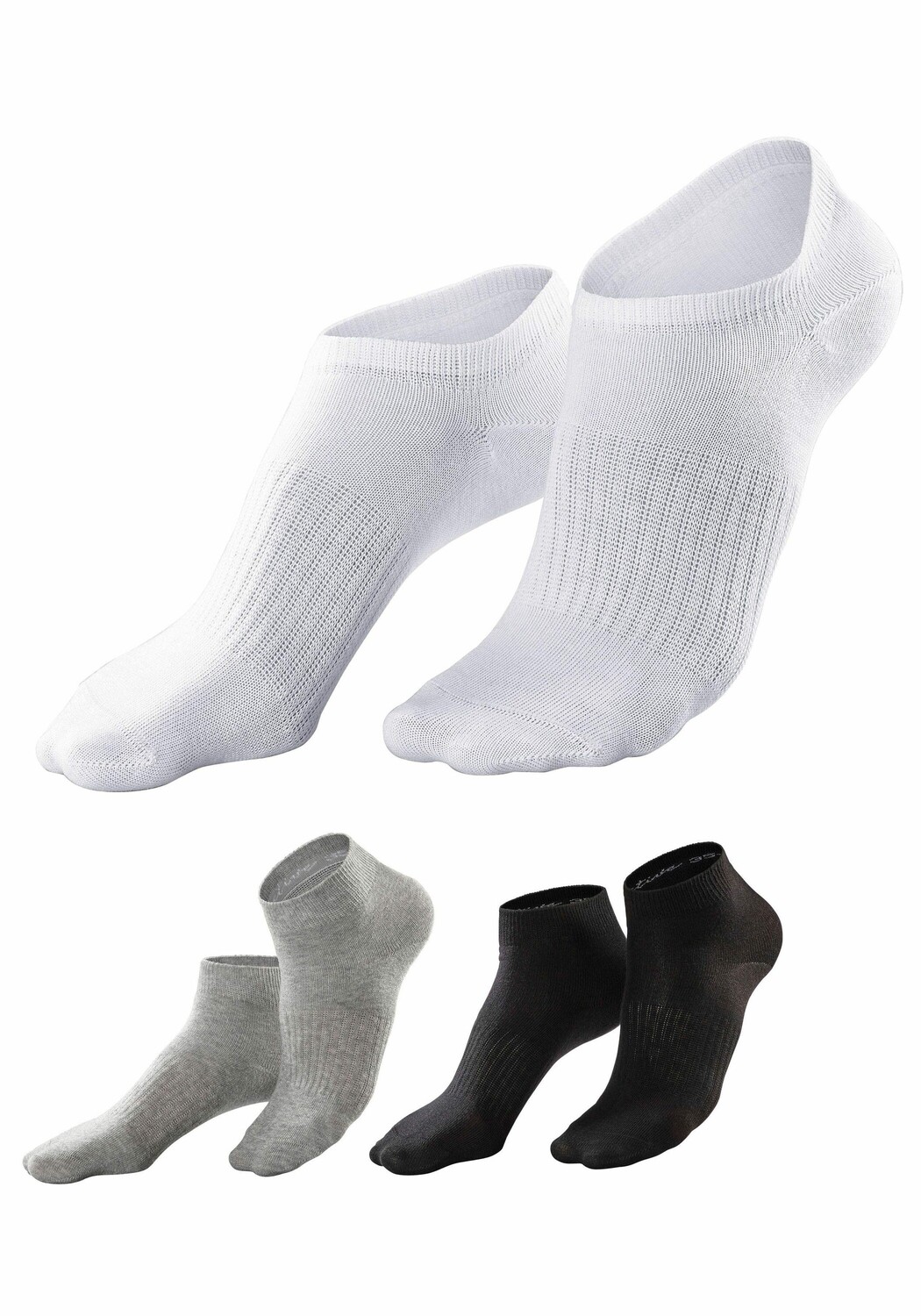 Носки LASCANA ACTIVE Sneaker, цвет 3x schwarz, 2x weiß, 2x hellgrau meliert 3 283₽