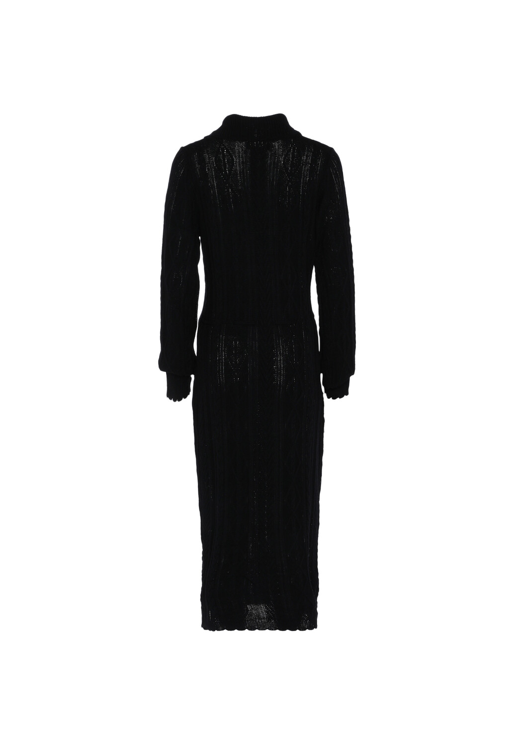 Вы быстро влюбитесь в это длинное трикотажное платье Faina. Выполнено из мягкой пряжи, имеет гармоничный узор вязки и волнистые края очаровательного воротника и манжет в стиле Питера Пэна. Пояс в тон подчеркивает фигуру.