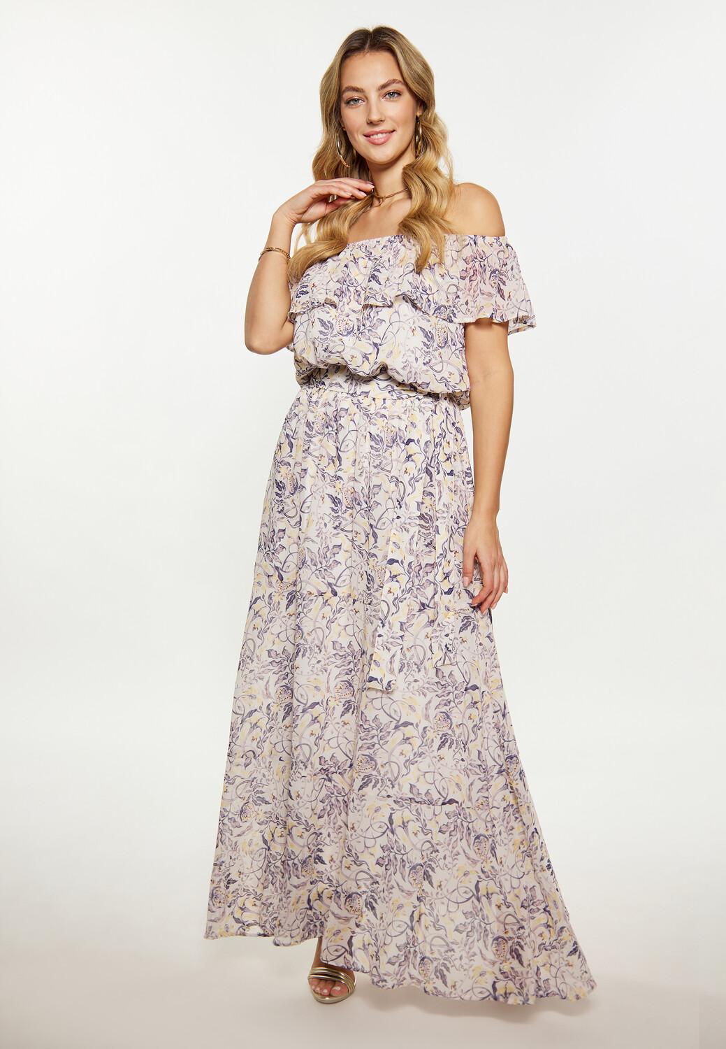 Представляем наше потрясающее платье макси, которое добавит нотку элегантности в ваш летний гардероб. Платье имеет красивый узор и короткие рукава, что делает его одновременно стильным и удобным. Вырез «Кармен» придает женственности и делает это платье незаменимым для любого случая. Обновите свой летний образ с помощью этого универсального и шикарного платья макси.
