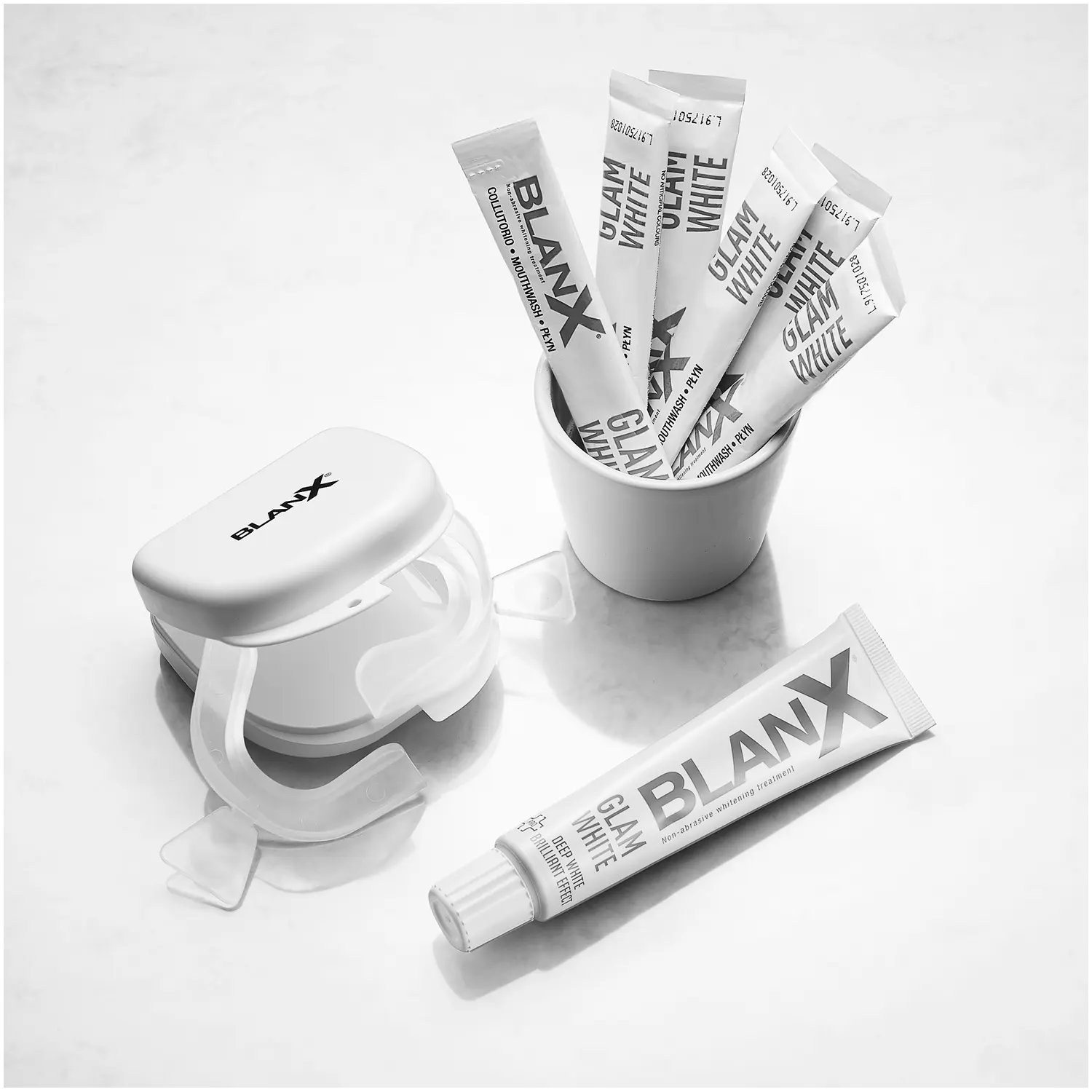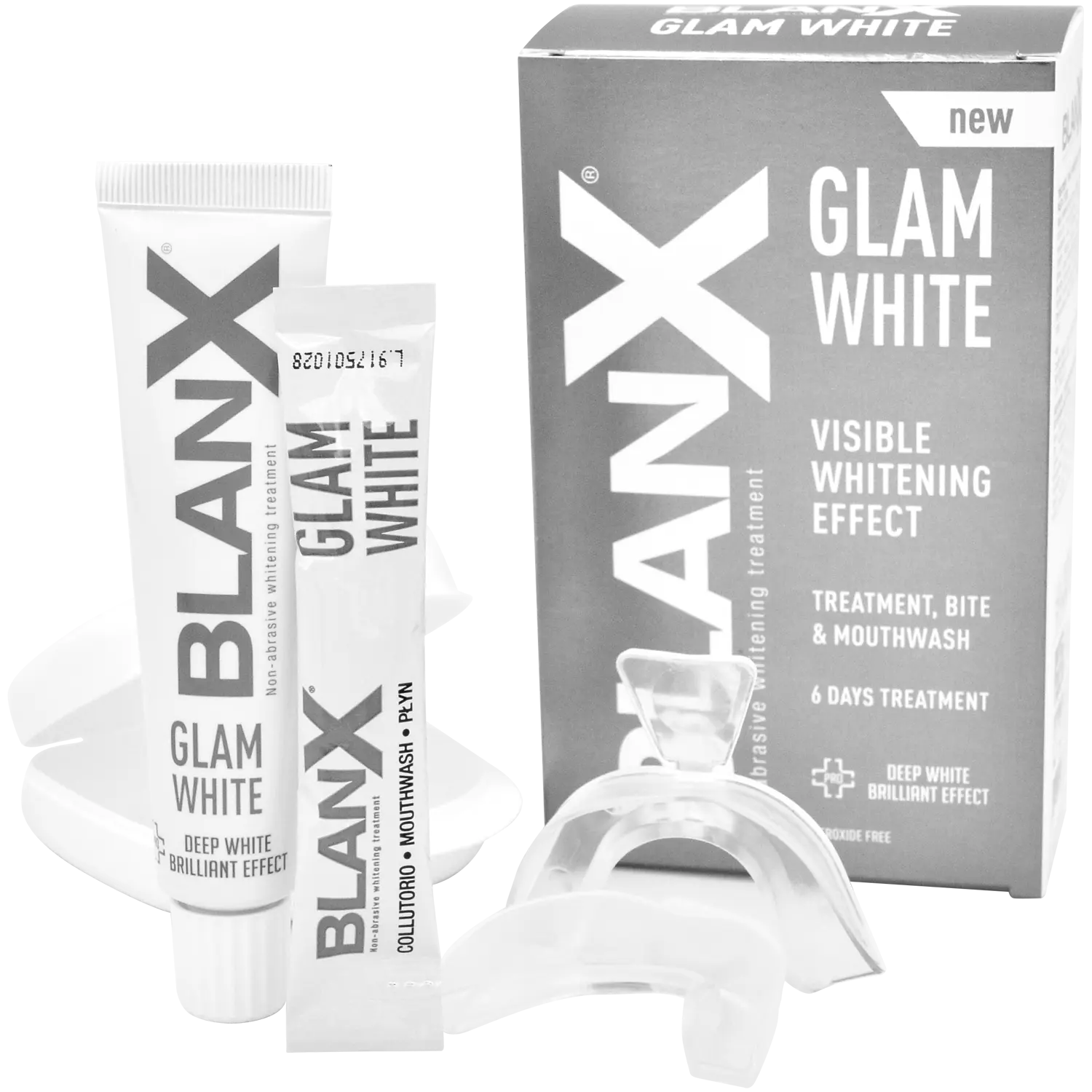 BlanX Glam White — это инновационная 6-дневная система, которая восстанавливает интенсивную белизну улыбки. BlanX Glam White обладает отбеливающим эффектом и долговременным предотвращением образования пятен, помогая поддерживать здоровье полости рта за счет уменьшения количества бактерий и зубного налета. Рекомендуется использовать систему BlanX Glam White один раз в день в течение шести дней.BlanX Glam White содержит инновационный ингредиент PAP, который прошел клинические испытания и работает уже после нескольких применений.Пара термоформируемых лотков (верхняя и нижняя) идеальная адгезия. пакетики с жидкостью для полоскания рта Освежает и снижает гиперчувствительность, использовать после каждой процедуры. /h3>