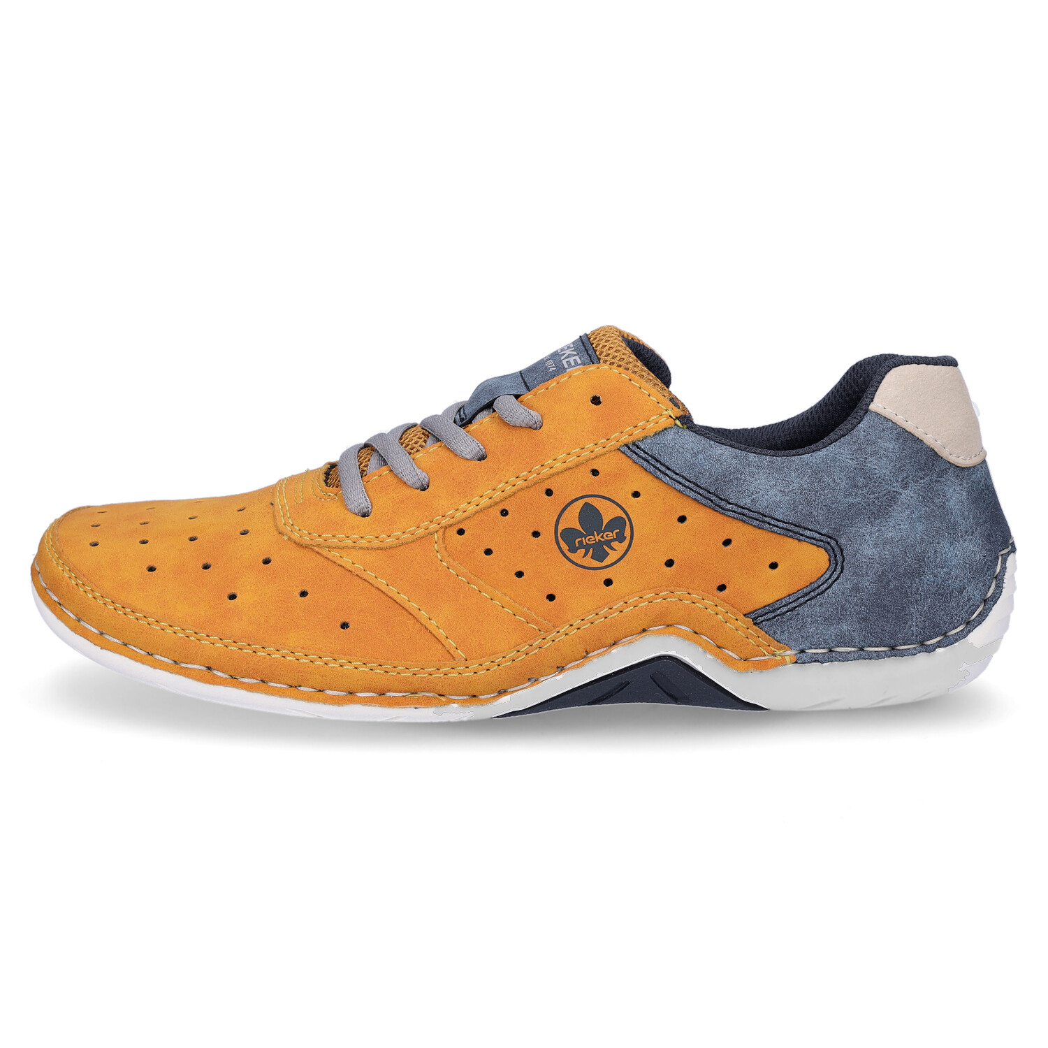 Мужские кроссовки Rieker из искусственной кожи желтого и синего цвета со съемной стелькой-памяткой.