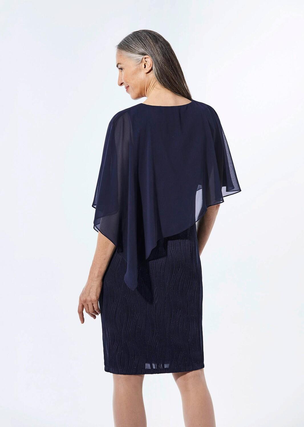 Платье из структурированного трикотажа повторяет каждое ваше движение и сочетает в себе элегантность и комфорт. Узкий крой платья не только обеспечивает идеальную посадку, но и удивляет сверкающими блестящими деталями. Изюминкой является асимметричный плед из нежного шифона, который придает платью изысканный вид. Элегантный вырез-лодочка дополняет общую картину. Длина около 102 см по размеру. 46, размер около 97 см. 23.
