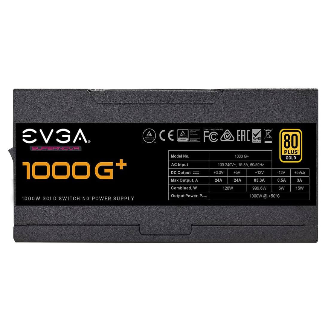 Блок питания EVGA SuperNOVA 1000 G1+ обеспечивает очень высокую номинальную мощность: величина этого показателя равна 1 кВт. Источник питания станет отличным выбором для пользователей, которые не привыкли себе отказывать в свободе выбора компьютерных комплектующих.